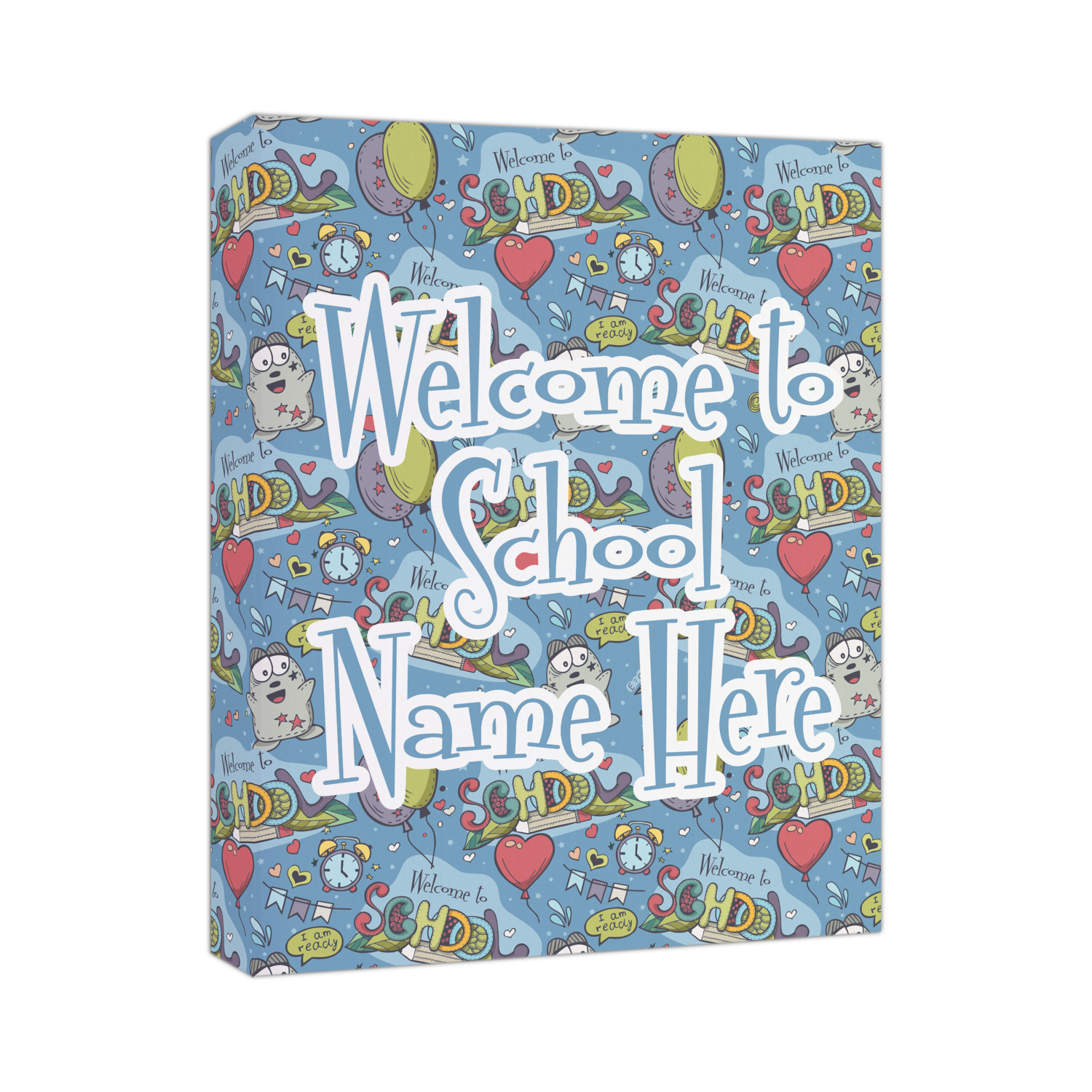 This design background is perfect for class room decor that welcomes student back to school! The background has a "Welcome to School" graphic along with a cartoon character that is ready for school, some balloons, hearts & airplanes. You can change the background color.