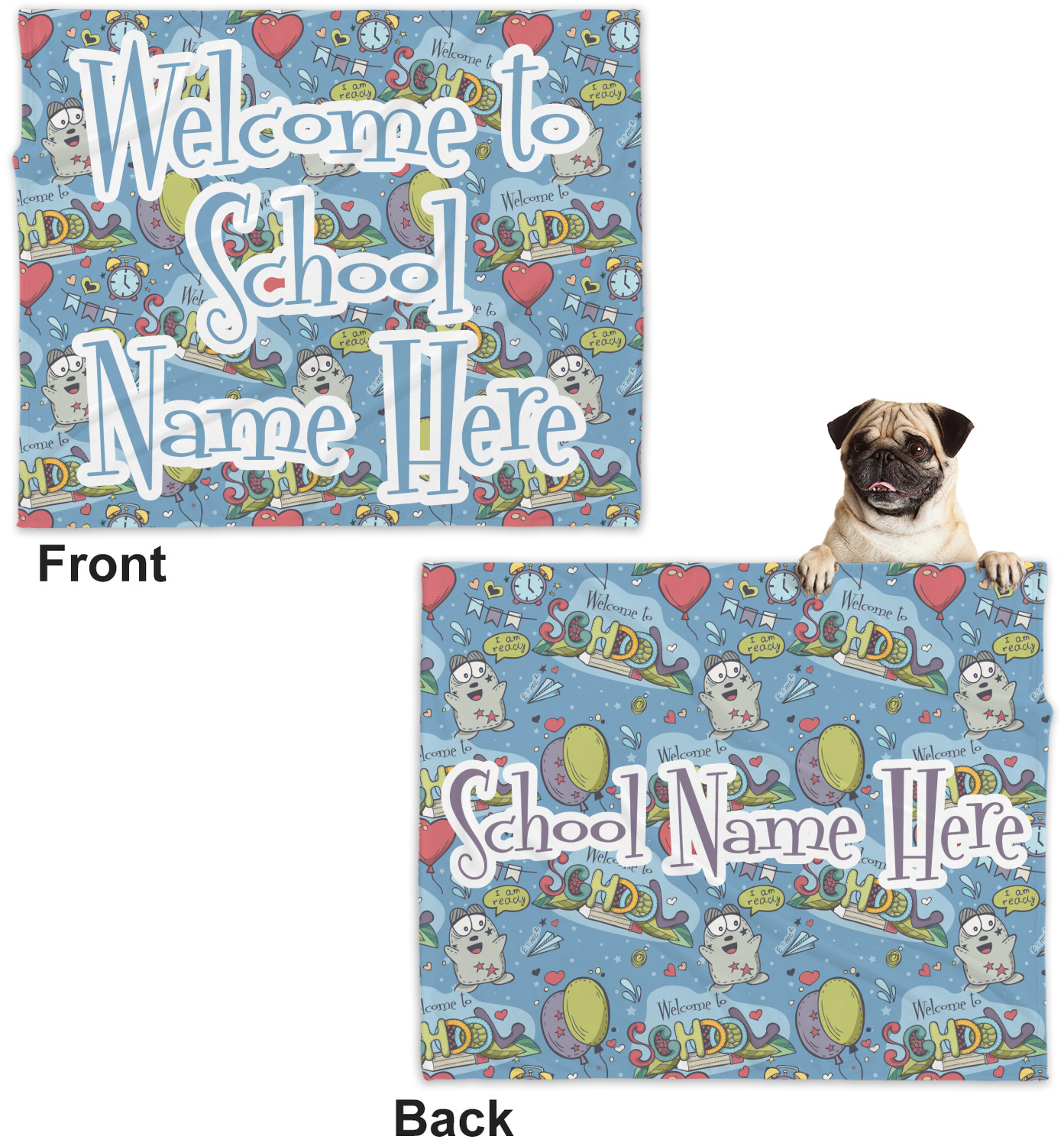 We have added the choice to personalize it with your school's name or any thing that you desire; however the choice is yours - simply remove the text if you do not want to personalize it