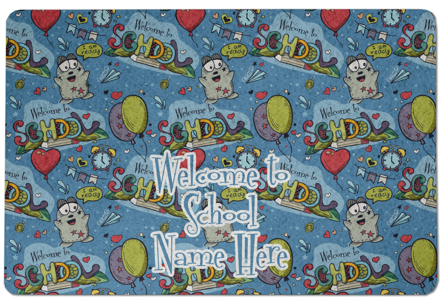 This design background is perfect for class room decor that welcomes student back to school! The background has a "Welcome to School" graphic along with a cartoon character that is ready for school, some balloons, hearts & airplanes. You can change the background color.