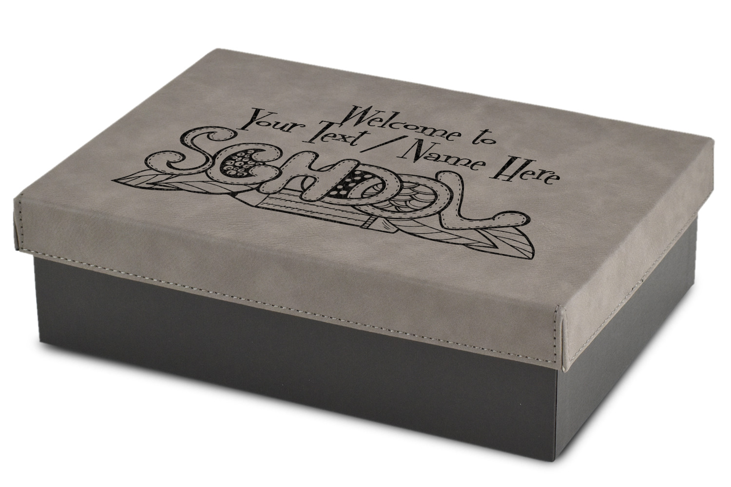 These gift boxes are available in 3 different sizes to accommodate various sized gifts. Available in gray as a neutral color for any occasion as well as to showcase your design boldly. Engraved with a laser this high quality paper board and faux leather gift box is unique and makes any gift stand out.