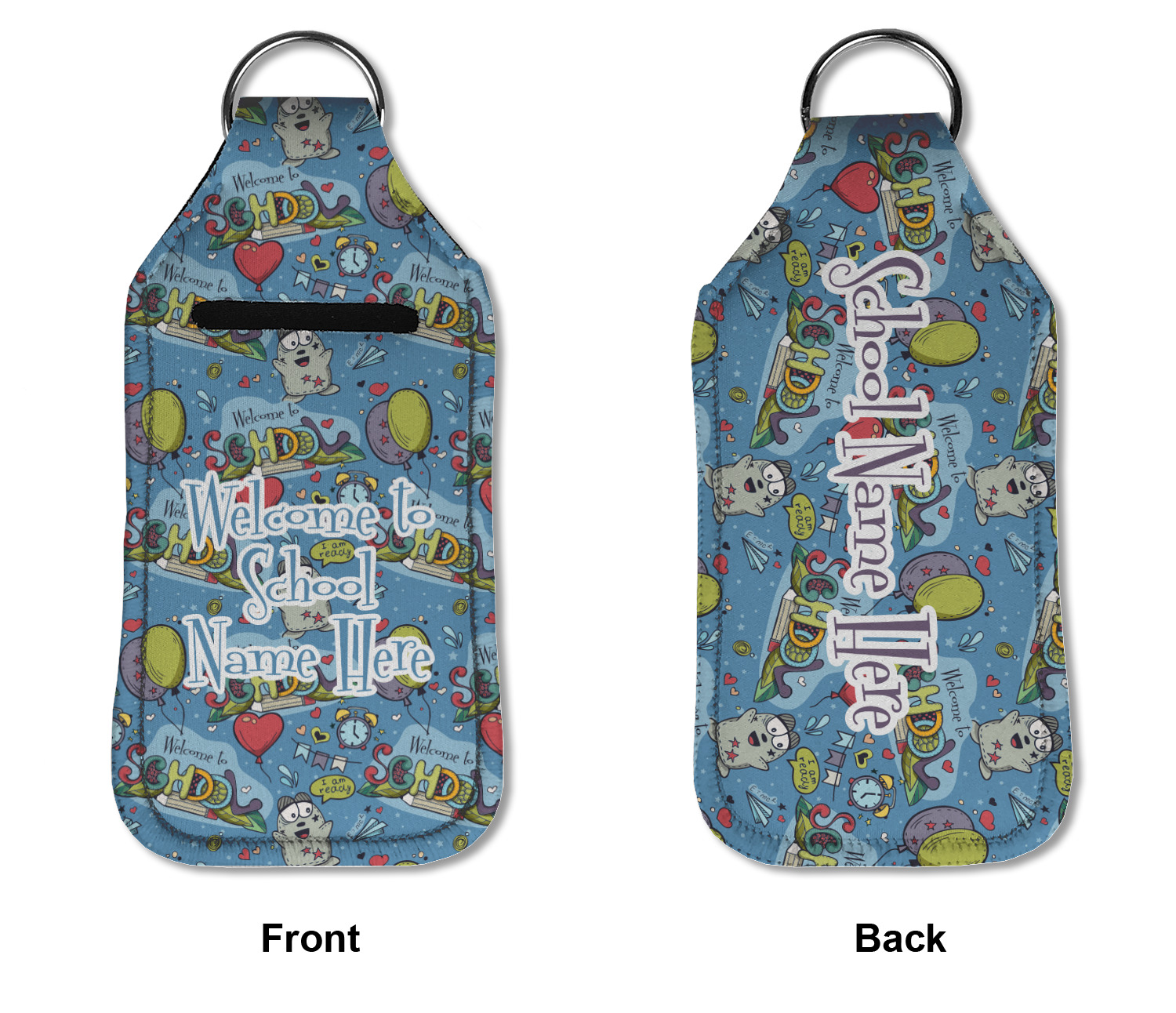 Each hand sanitizer holder comes with its own empty travel-sized, refillable hand sanitizer sure to fit snug in your customized sanitizer case! Our hand sanitizer cases are a durable, yet soft neoprene material sure to last any daily activities or travel agenda. Customize and personalize a hand sanitizer bottle holder with one of our two sizes - small (4.25" x 2.25") or large (5.5" x 2.5"). Each travel sanitizer holder comes with a keyring for attachment on bags, keys, or more!