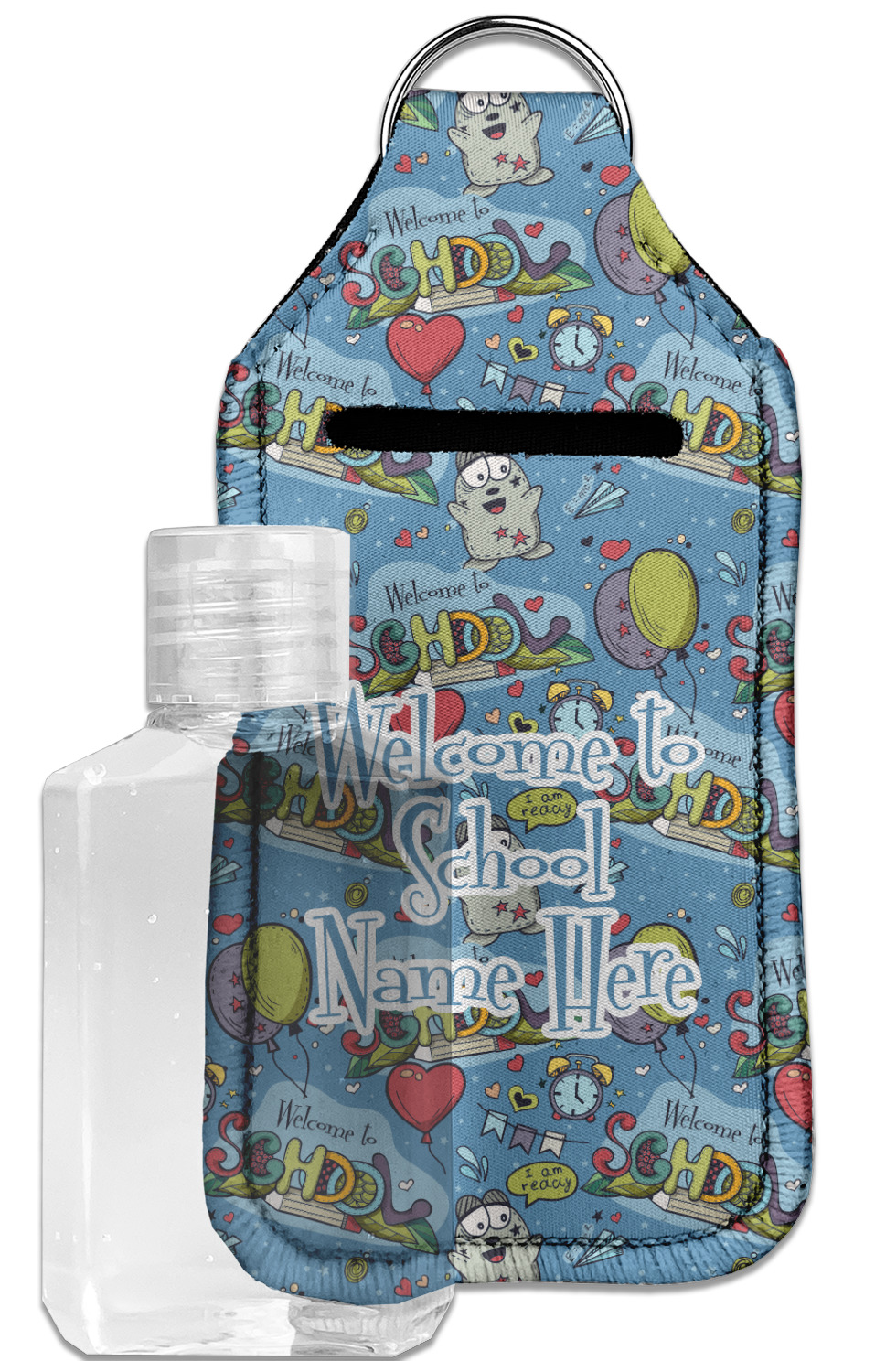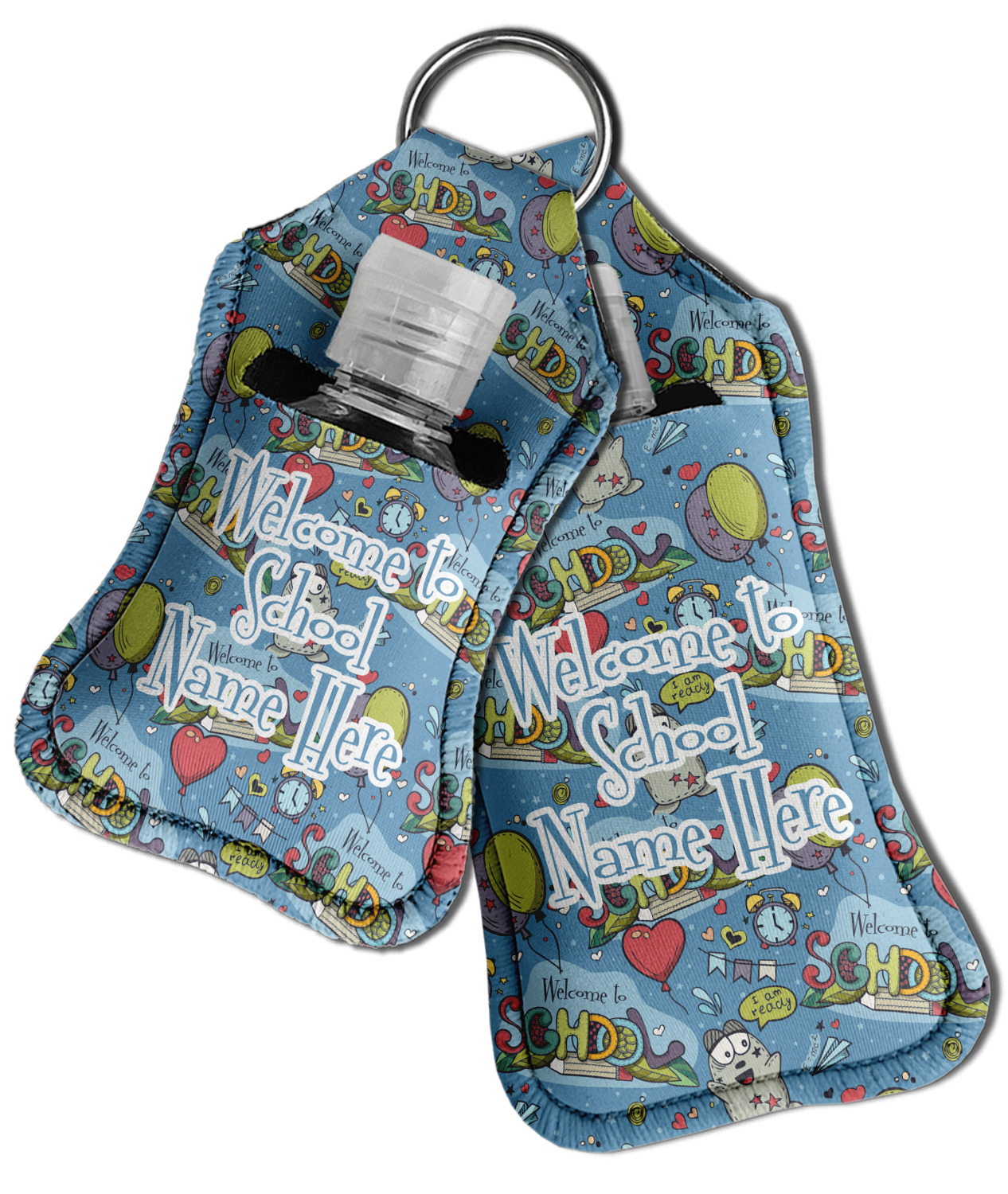 Each hand sanitizer holder comes with its own empty travel-sized, refillable hand sanitizer sure to fit snug in your customized sanitizer case! Our hand sanitizer cases are a durable, yet soft neoprene material sure to last any daily activities or travel agenda. Customize and personalize a hand sanitizer bottle holder with one of our two sizes - small (4.25" x 2.25") or large (5.5" x 2.5"). Each travel sanitizer holder comes with a keyring for attachment on bags, keys, or more!