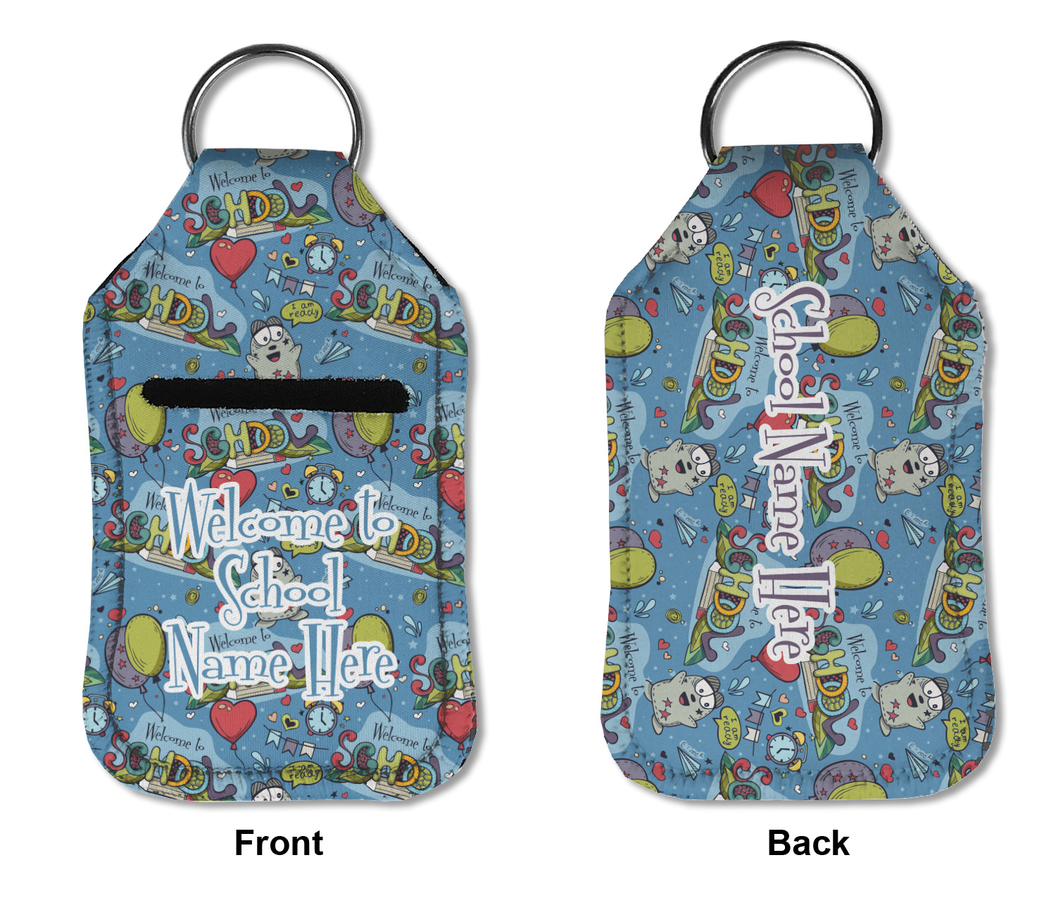 Each hand sanitizer holder comes with its own empty travel-sized, refillable hand sanitizer sure to fit snug in your customized sanitizer case! Our hand sanitizer cases are a durable, yet soft neoprene material sure to last any daily activities or travel agenda. Customize and personalize a hand sanitizer bottle holder with one of our two sizes - small (4.25" x 2.25") or large (5.5" x 2.5"). Each travel sanitizer holder comes with a keyring for attachment on bags, keys, or more!