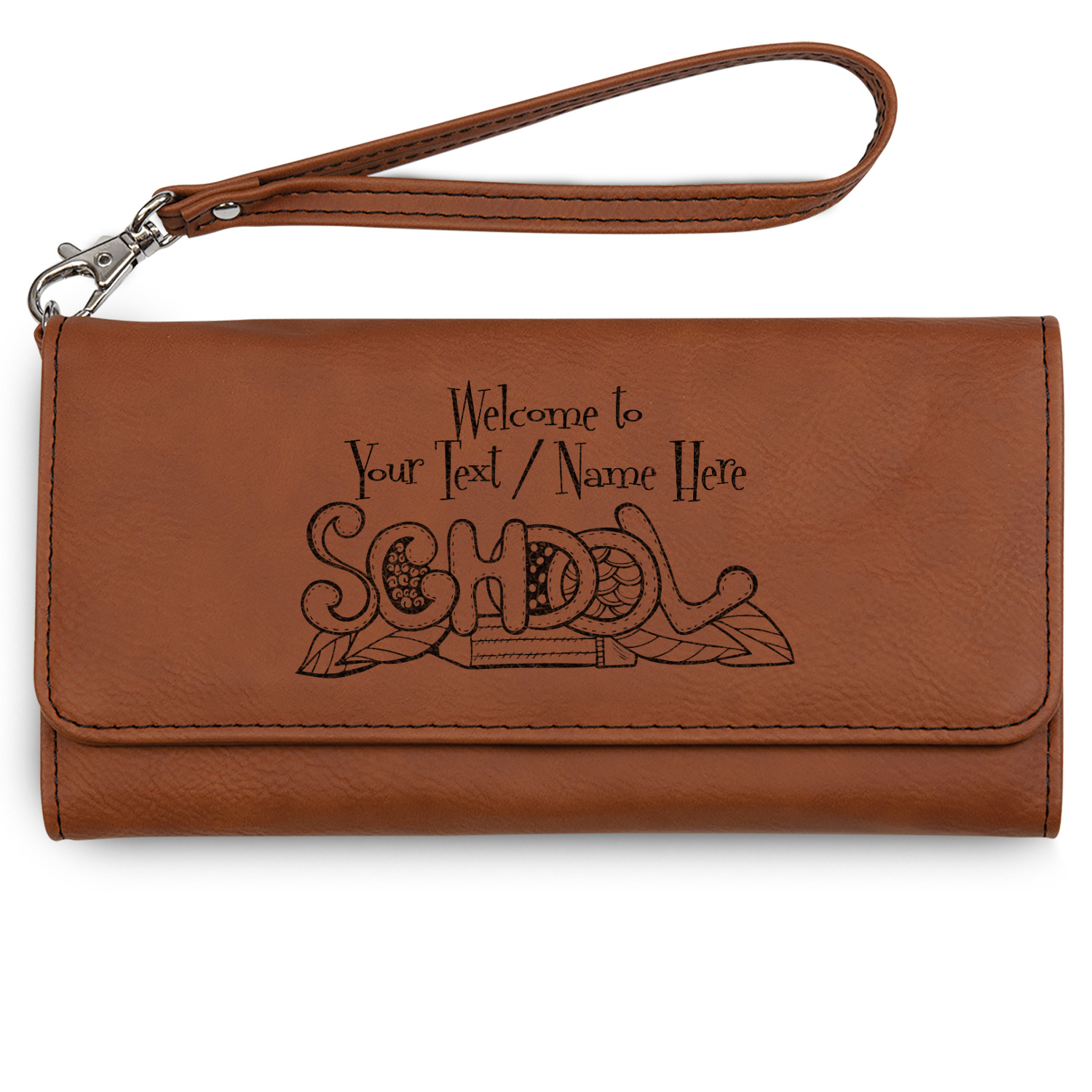 These personalized ladies leather wallets are available in 2 colors - rawhide / cognac and teal.