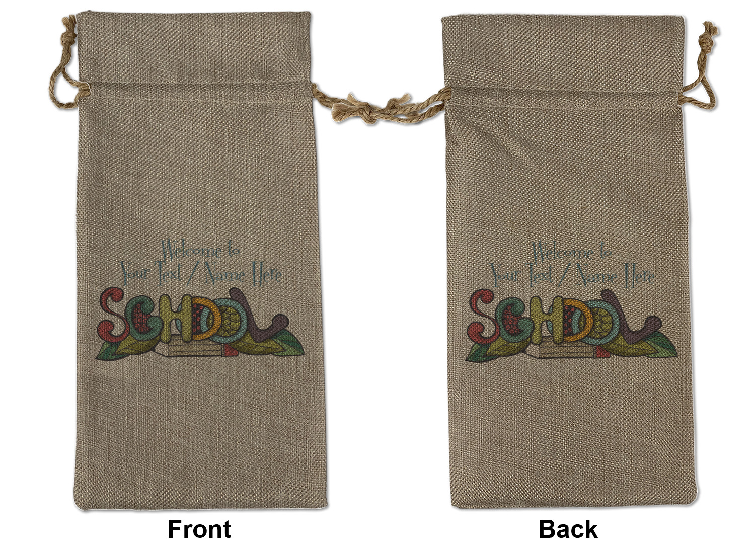 We sell our Burlap Gift Bags in 3 variant sized bags. Made with burlap polyester, each personalized bag can be secured with a twine drawstring pull. Your custom design is available to print on one side or both sides - completely up to you! The sizes of the bags measure approximately 4.5" x 6.5" for the smallest size, 6.5" x 8.0" for the medium size, and 6.5" x 13.5" for the large-sized bag.