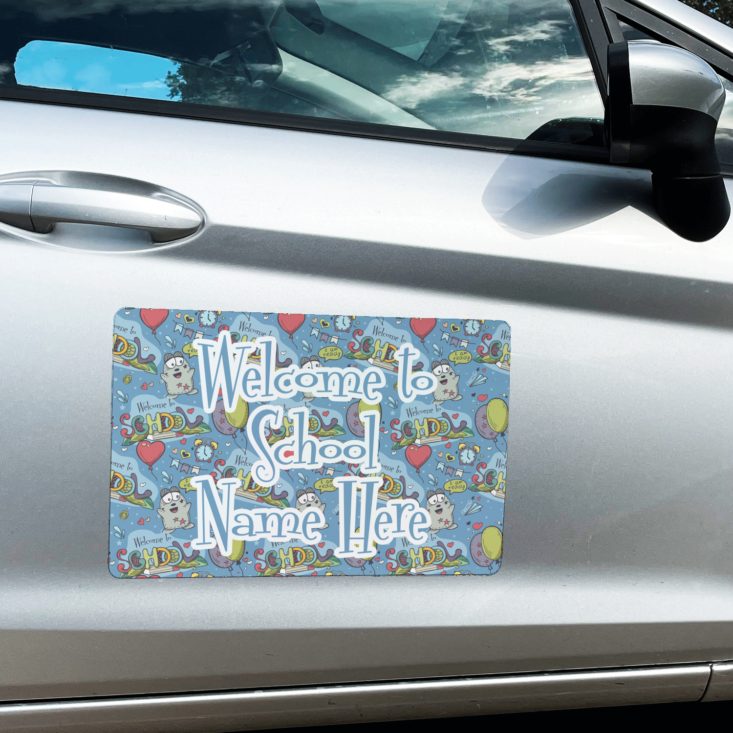 Your personalized large car magnet measures at 18 inches wide by 12 inches tall. They are 1 millimeter thick, which is considered, within the industry, as the ideal thickness for automobile magnets. The magnetic car decals will adhere to any smooth, ferrous metal surface of your cars body, such as the trunk door or a side panel.