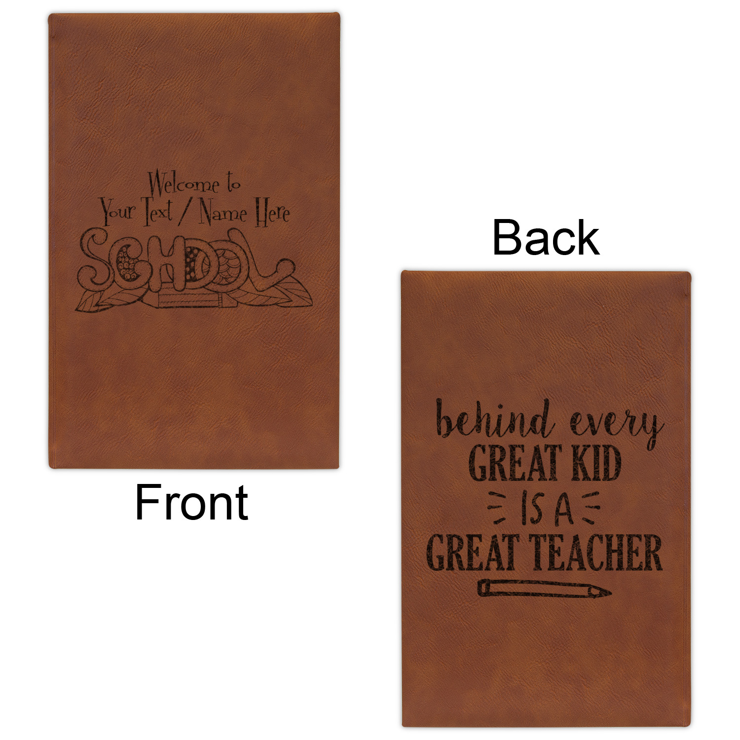 The faux leather covers are a rich cognac / rawhide color and can be customized with your design. From a simple name or monogram or a logo to a detailed mandala - the choice for customization & personalization is truly yours. Customize one of our designs or upload your own.