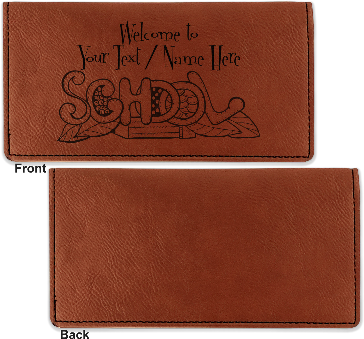 Go into our design center to start personalizing. Your checkbook cover will be laser engraved, making the graphic or text a black color. Choose a fun saying, monogram, or font to go on your checkbook cover. You have the opportunity to do it double or single sided.