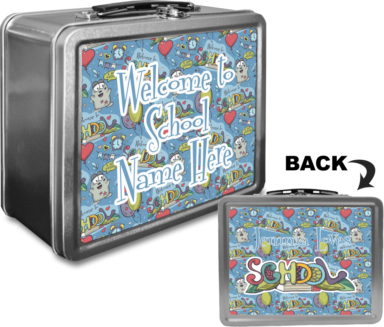 When customized, these boxes can also serve as a unique keepsake box! We print your design on both the front and back of this box, using a high quality matte vinyl, with waterproof inks that withstand the test of time. The designs are then machine cut, and adhered to the sides of the metal lunch container.