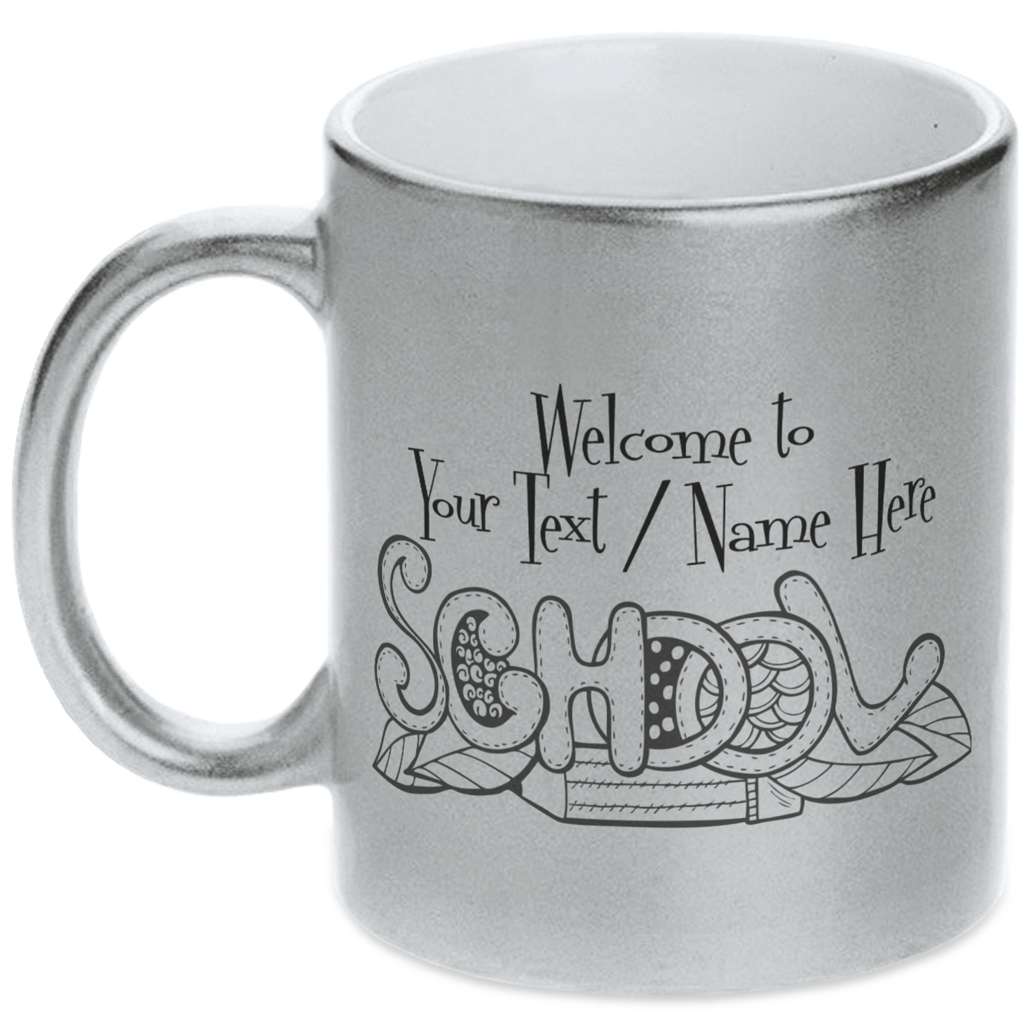 Our custom mugs are ceramic, which is great for keeping your tea or coffee warm! We offer two metallic mugs to personalize - Silver or Gold. Both styles hold around 11oz and have dimensions of approximately 3.75" x 3.5" x 4.75". Both the metallic mugs come in a matte finish and have glitter detailing to add a more pristine feel to the gold and silver base colors.