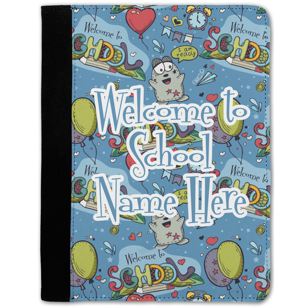 These personalized padfolios are made from a black, polyester microfiber and features a standard, 50-page notepad. However, these black padfolios can accommodate a pad with up to 100 pages. This model also features a slot pocket for any loose sheets of paper, small pockets for business cards, and an elastic band to secure a pen. We print your personalization across the front of this notepad portfolio in bright, vibrant color. These padfolios come in 2 sizes, Medium - approximately 10.25" x 8" for 5" x 8" paper and Large - approximately 12.5" x 8.5" for 8.5" x 11" paper.