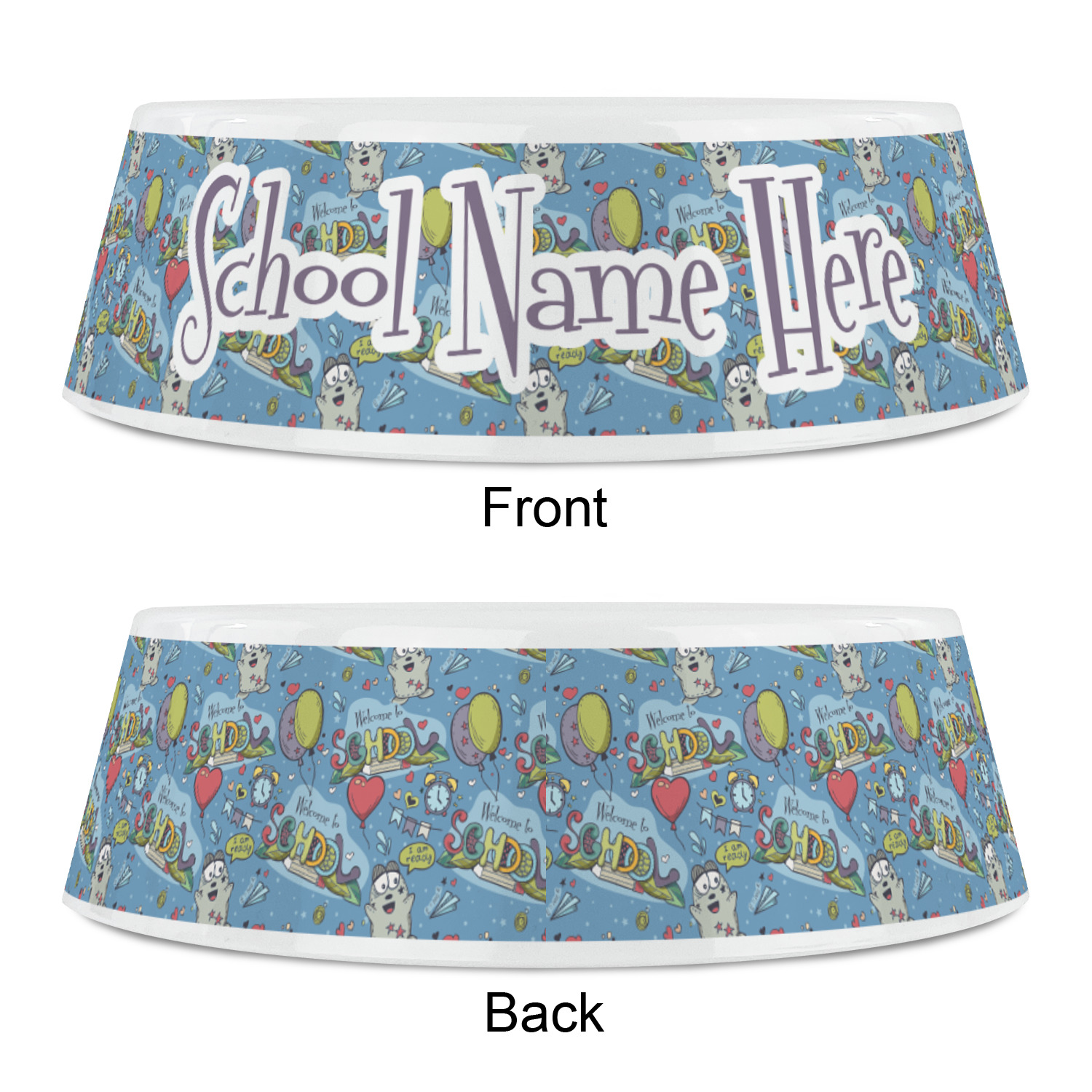We have added the choice to personalize it with your school's name or any thing that you desire; however the choice is yours - simply remove the text if you do not want to personalize it