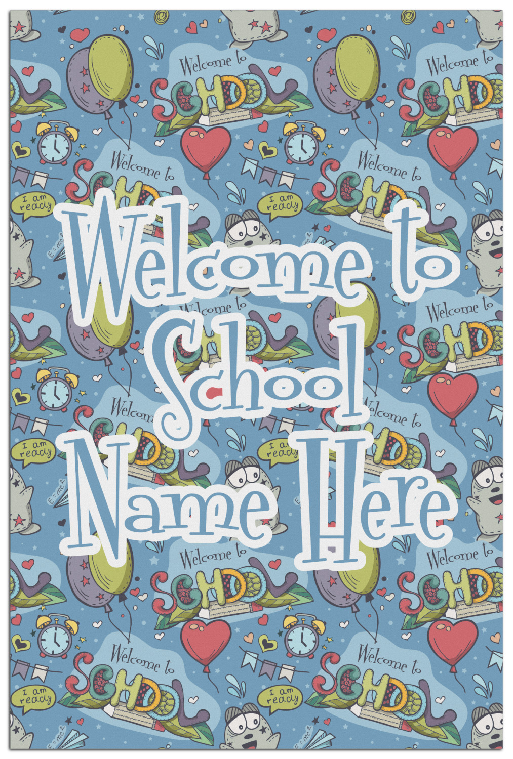 This design background is perfect for class room decor that welcomes student back to school! The background has a "Welcome to School" graphic along with a cartoon character that is ready for school, some balloons, hearts & airplanes. You can change the background color.