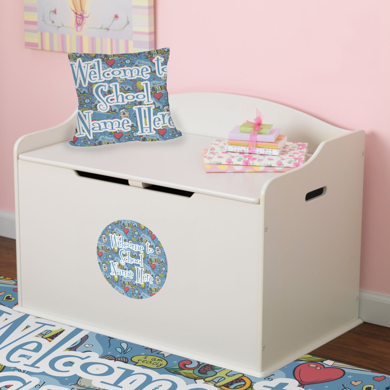 We have added the choice to personalize it with your school's name or any thing that you desire; however the choice is yours - simply remove the text if you do not want to personalize it