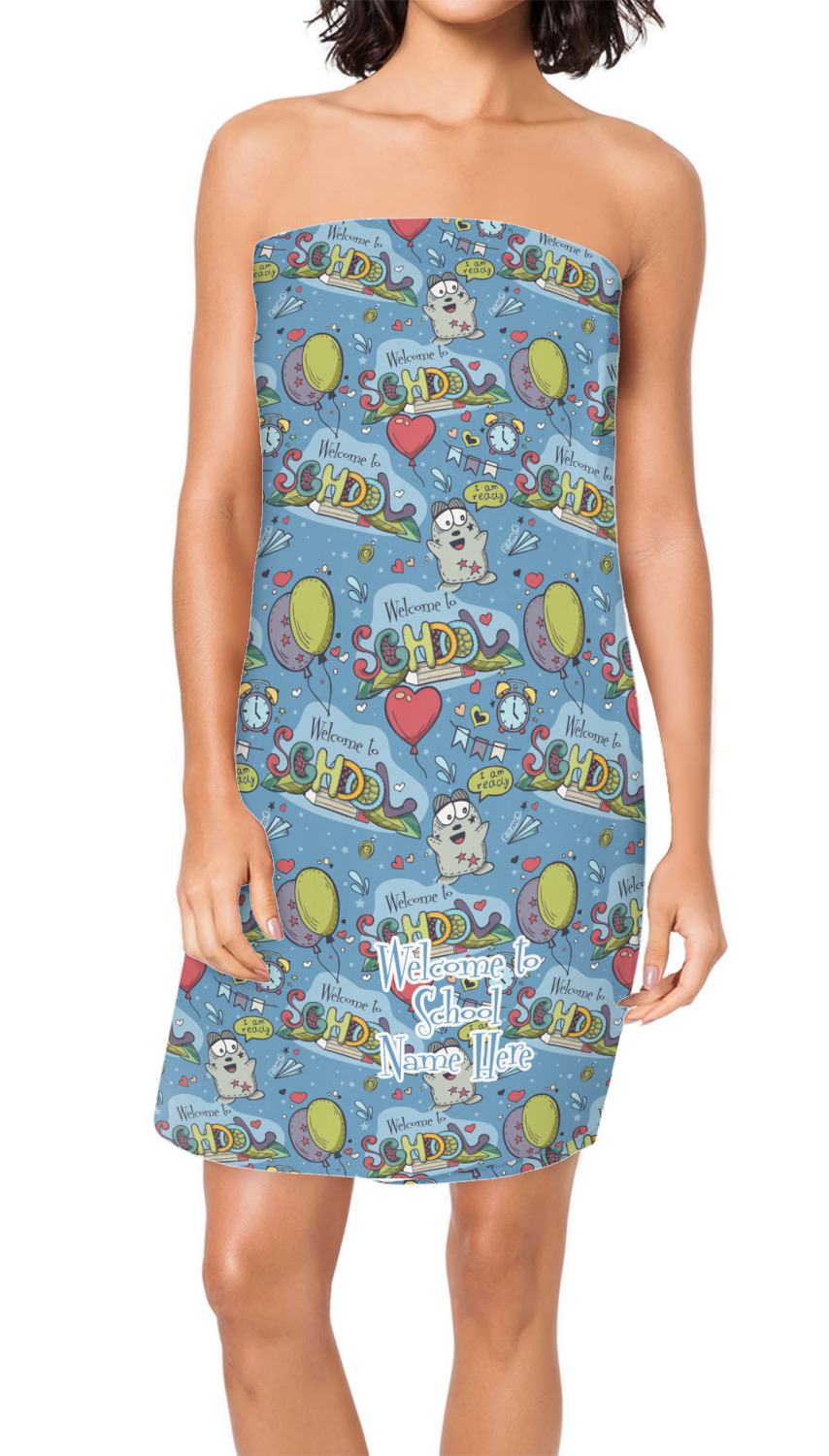 Made from a plush, fleece fabric, these luxurious towel wraps are comfortable and absorbent. They are printed, cut, and sewn for you, right here in the USA, after you place your order. These personalized bath wraps measure at approximately 59 by 32 inches, and display your customization across the outside.
