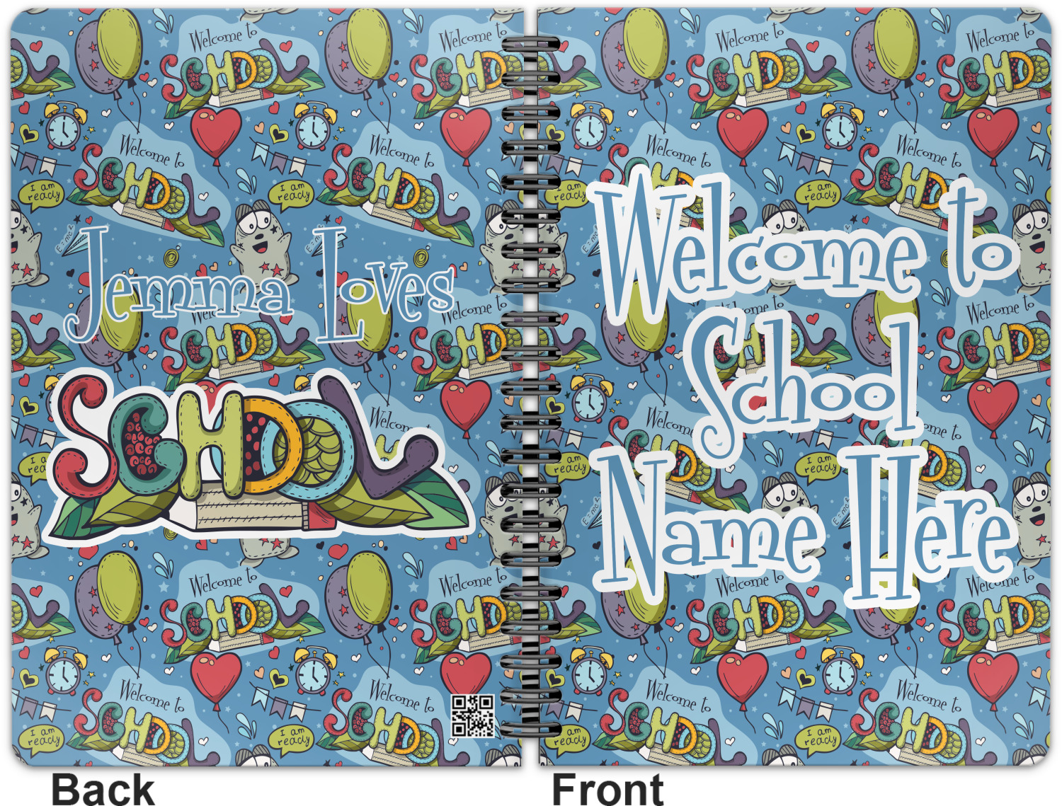 This spiral notebook includes 75 sheets of thick, ruled paper. The front and back of this custom notebook is made of a robust, laminate, plastic covering. We print your personalization on these two panels, underneath a glossy finish, which emphasizes the colors of your design. The two panels and the sheets of paper are held together by a sturdy, black coil. The paper within your bound notebook is perforated for easy, clean tearing.