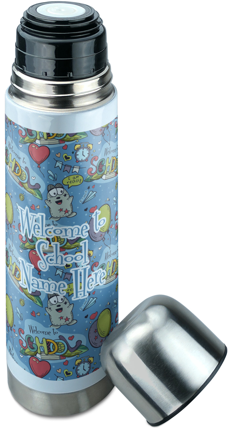 Manufactured from stainless steel, this thermos is built durably and double-walled insulated to preserve the temperature of your drink for hours. It also features a screw off lid that is made to also function as a small cup. Upon unscrewing this part of the thermos bottle, a pop-open, pour feature emerges. This feature allows you to slowly pour your beverage into your lid, ensuring a steady, controlled pour into your lid or other cup. With a capacity of 25 ounces, these large thermoses can hold several servings of your favorite beverage. Your customization is displayed all around the bottle with bright, vibrant color.
