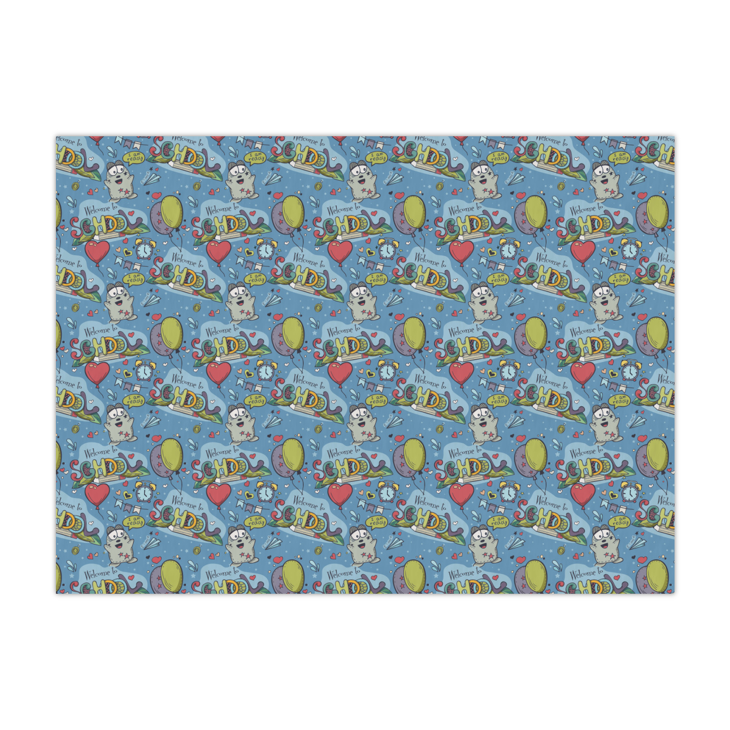 This design background is perfect for class room decor that welcomes student back to school! The background has a "Welcome to School" graphic along with a cartoon character that is ready for school, some balloons, hearts & airplanes. You can change the background color.