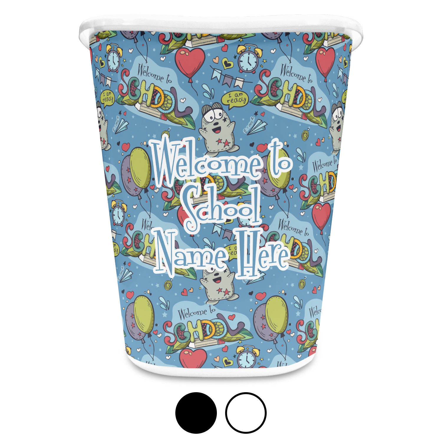 You can choose to purchase these decorative wastebaskets in either a white or a black color that will show on the base and the upper rim. Your customization is printed on a high-gloss, fine-quality vinyl adhesive, and you can choose to either have this adhesive applied to one side only or to both sides. As such, this plastic wastebasket can be single-sided or double-sided, depending on your creative vision. Your customization is printed using durable inks, making the design waterproof and resistant to fading over time.