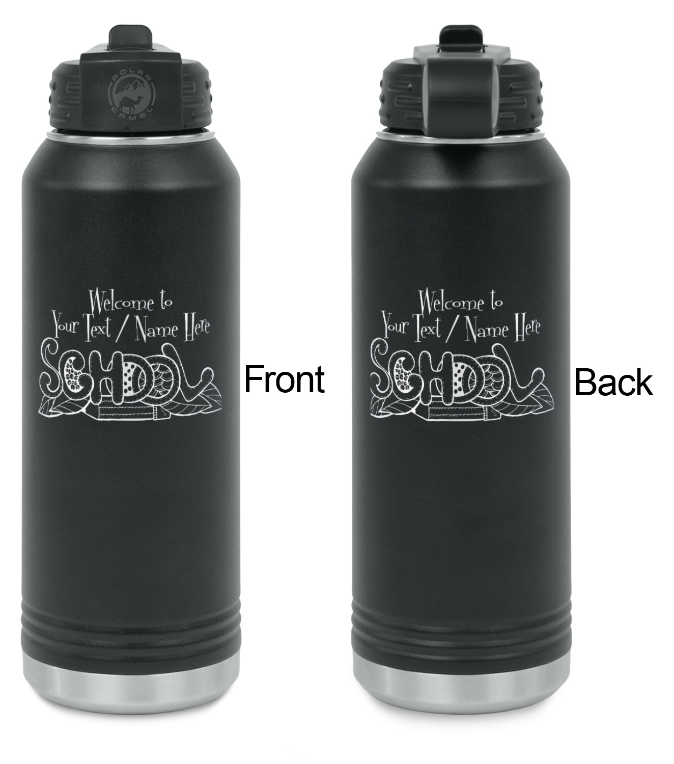 Our laser engraved stainless steel water bottles are designed for on the go lifestyle. These water bottles are perfect for the gym, the office, traveling, camping, hiking etc.