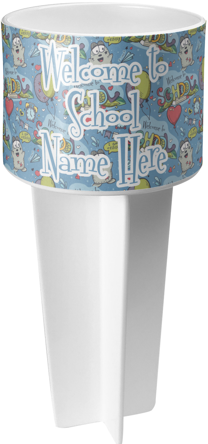 This cup holder has a large stake at its bottom that anchors it to the sand or ground below, while the cup holder rests above the stake. The entire drink holder is made of durable plastic and displays your customization around the cup holder portion. We sell these personalized beach spikers in two different colors: black and white.