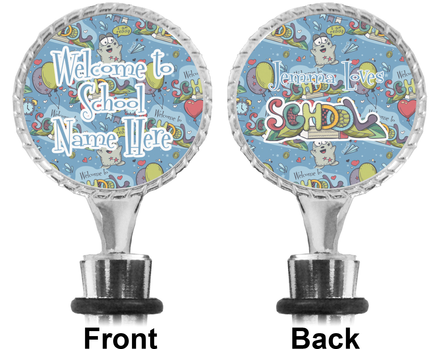The top part of your bottle stopper is comprised of a zinc ring that displays your customization(s) in its middle, on both sides. The ring is heavy duty, with a bright chrome finish. The body of the wine stoppers have two silicone rings to provide an airtight seal. These wine bottle stoppers measure at 1.625" L x 0.8125" W x 4.625" H; your custom wine stopper is meant to fit into most standard-sized wine bottles.