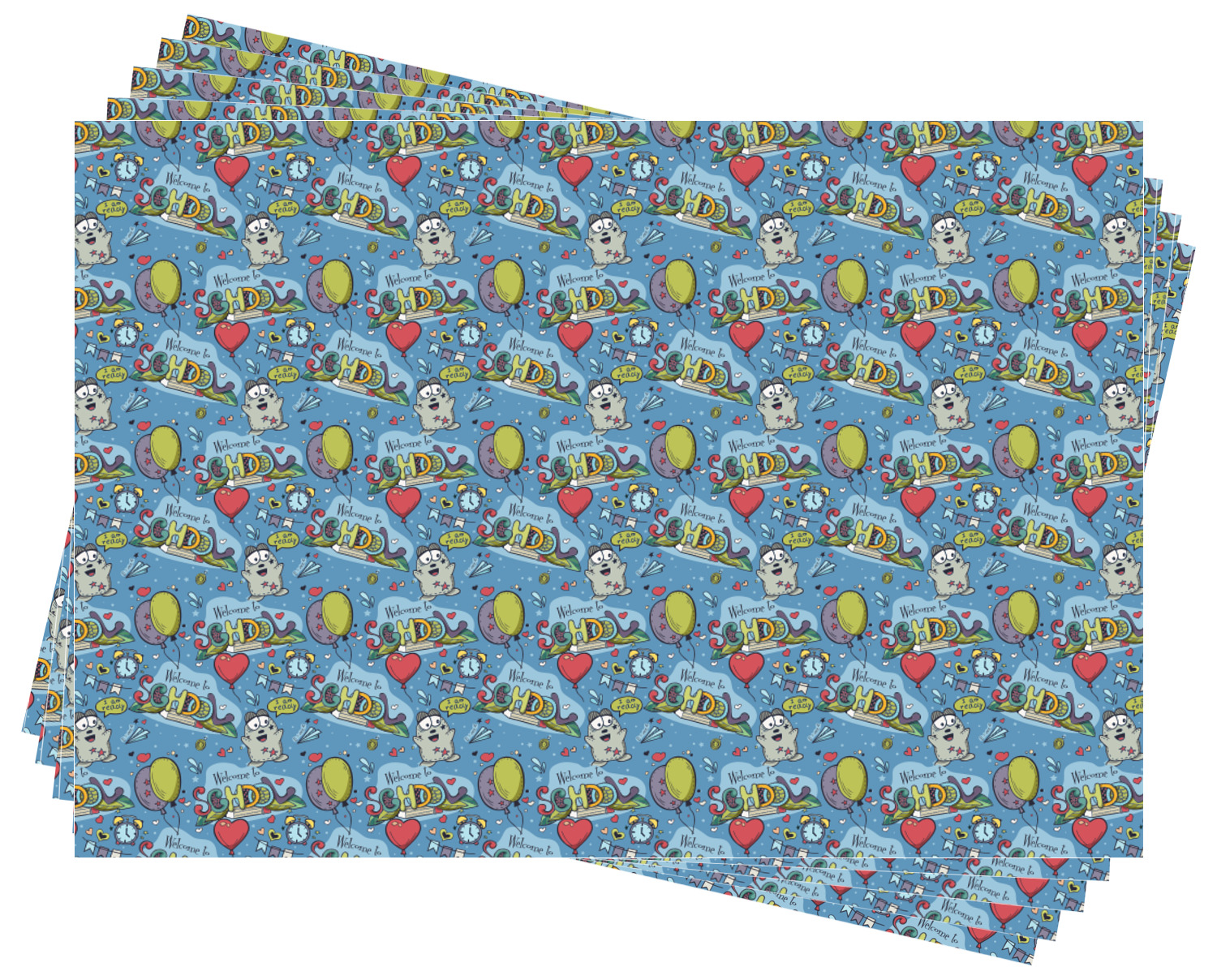This design background is perfect for class room decor that welcomes student back to school! The background has a "Welcome to School" graphic along with a cartoon character that is ready for school, some balloons, hearts & airplanes. You can change the background color.