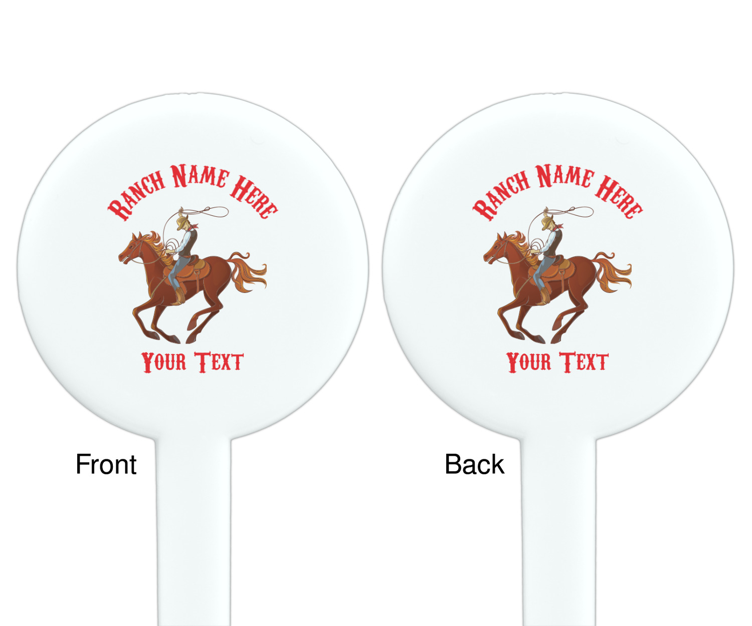 The design has two backgrounds where one fills up two thirds of the background and the other fills up the remaining third. The top third is a bright red paisley design that will get you smiling. The bottom two thirds is a denim pattern that feels like home. A rope ribbon divides the two backgrounds. On the bottom part is a roping cowboy graphic with your personalization above and below him.