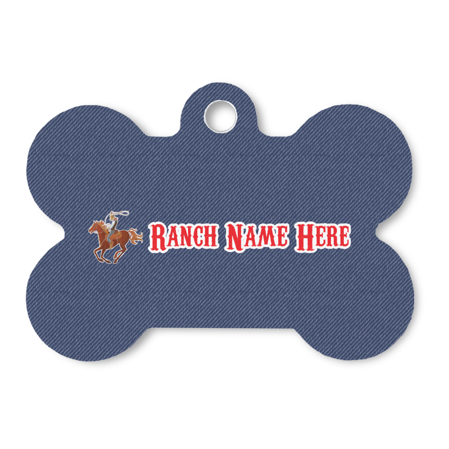 The design has two backgrounds where one fills up two thirds of the background and the other fills up the remaining third. The top third is a bright red paisley design that will get you smiling. The bottom two thirds is a denim pattern that feels like home. A rope ribbon divides the two backgrounds. On the bottom part is a roping cowboy graphic with your personalization above and below him.