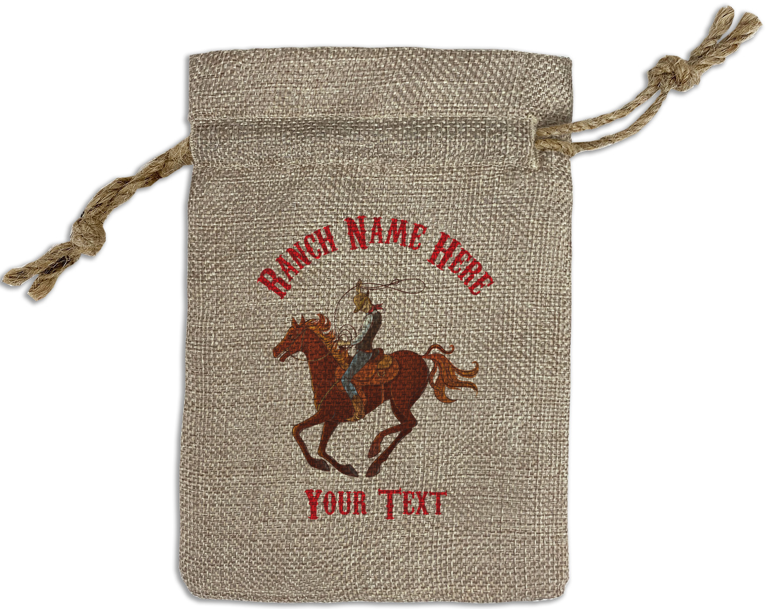 We sell our Burlap Gift Bags in 3 variant sized bags. Made with burlap polyester, each personalized bag can be secured with a twine drawstring pull. Your custom design is available to print on one side or both sides - completely up to you! The sizes of the bags measure approximately 4.5" x 6.5" for the smallest size, 6.5" x 8.0" for the medium size, and 6.5" x 13.5" for the large-sized bag.