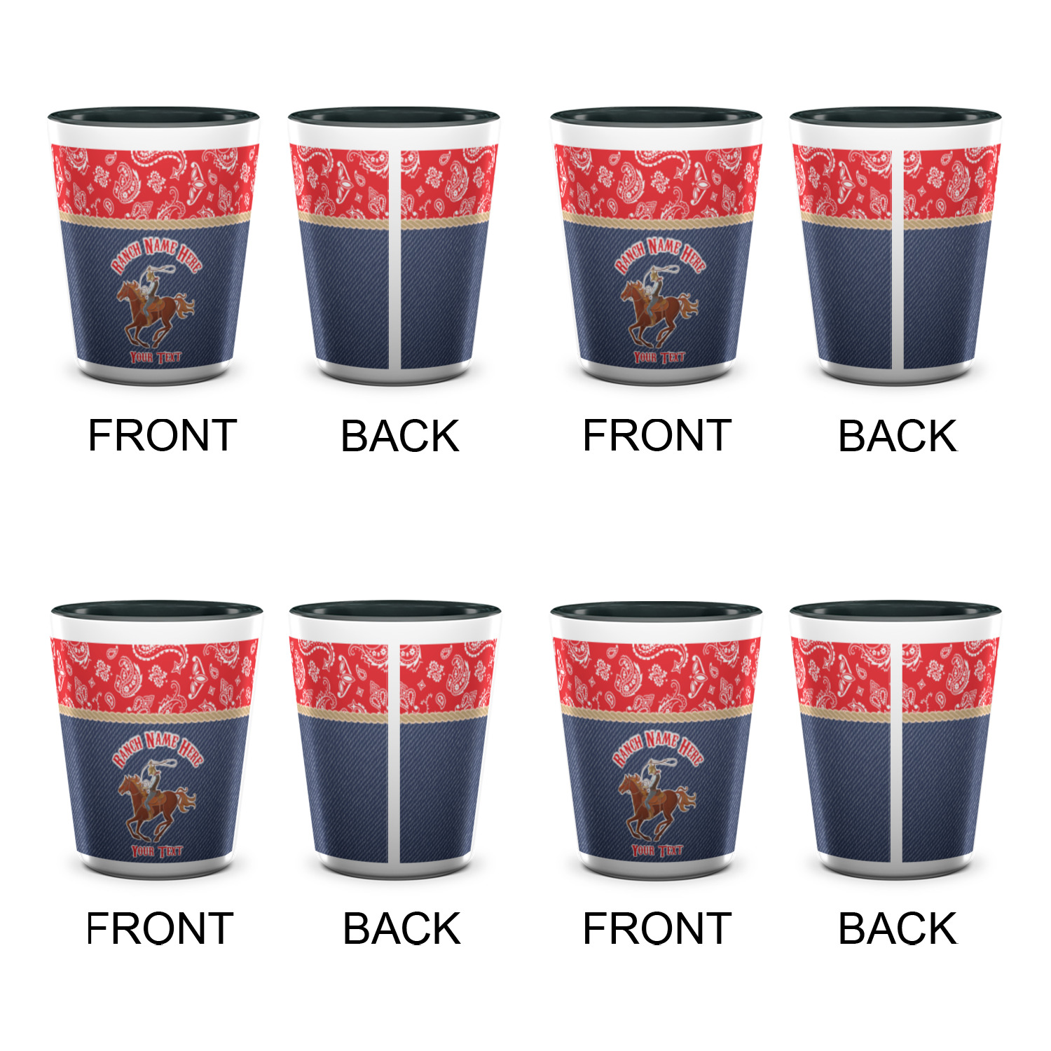 Made from ceramic these shot glasses are printed in full color with the design of your choice. These are a standard 1.5oz size and stand 2.25" tall. Available in a full white ceramic or a two-tone with a black color inside the shot glass. Buy a single or a set of 4, all of which can be designed separately to get you just what you want and need.