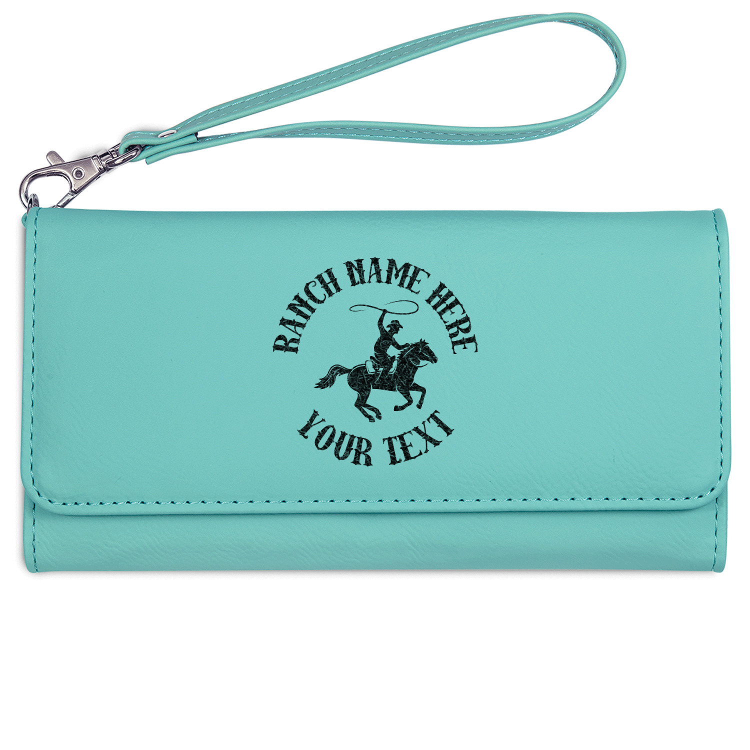 These personalized ladies leather wallets are available in 2 colors - rawhide / cognac and teal.