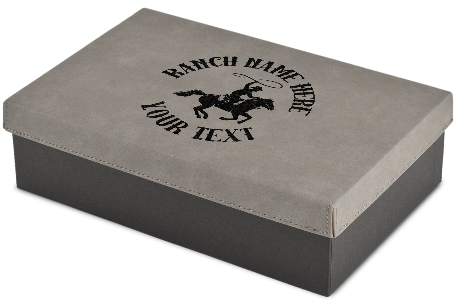 These gift boxes are available in 3 different sizes to accommodate various sized gifts. Available in gray as a neutral color for any occasion as well as to showcase your design boldly. Engraved with a laser this high quality paper board and faux leather gift box is unique and makes any gift stand out.