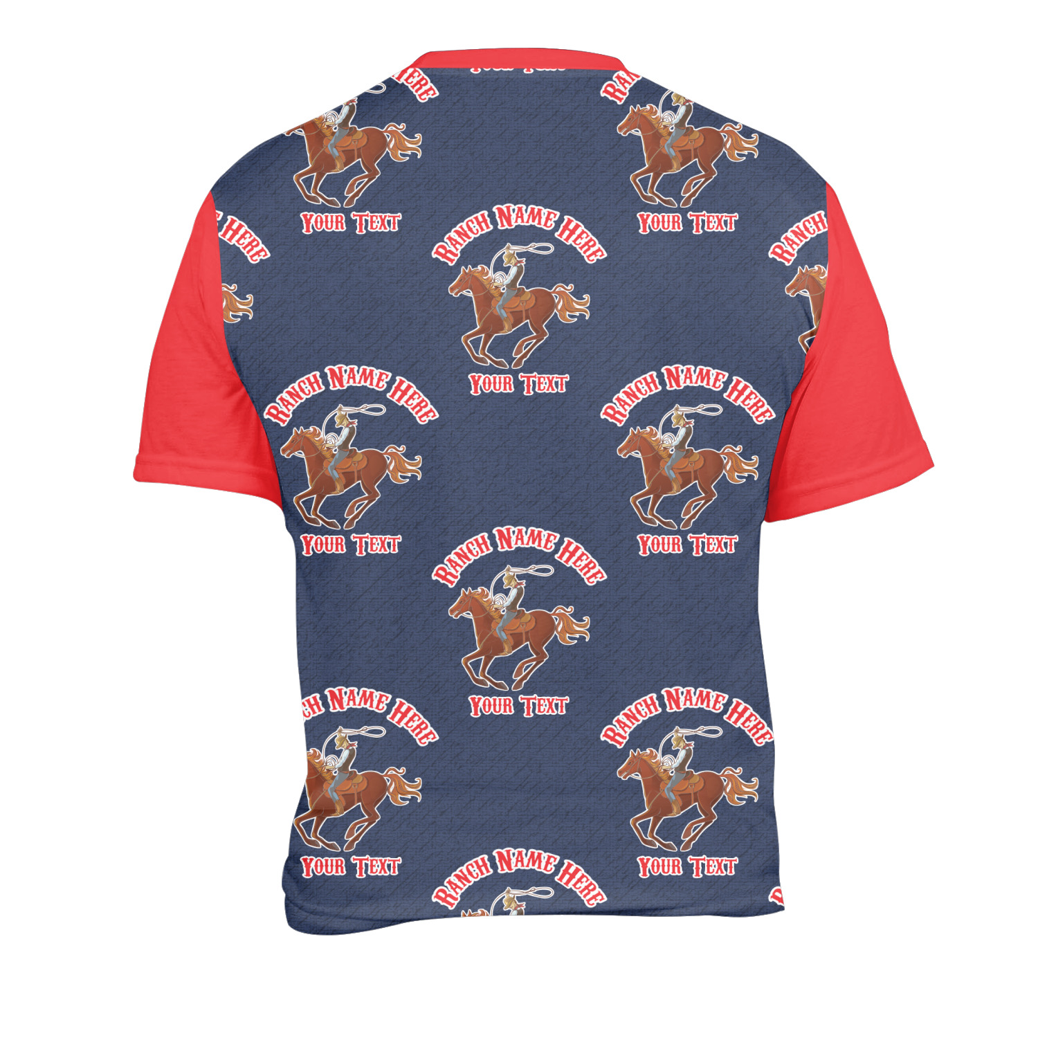 Our mens t-shirts are a lovely jersey knit polyester. They come in 6 different sizes ranging from Small to XXX-Large. These shirts are your basic comfy crew neck t-shirts that look good on anyone. You are able to personalize the sleeves, front, AND back! Isn't that awesome?! Make everything one color or all different. The choice is yours.