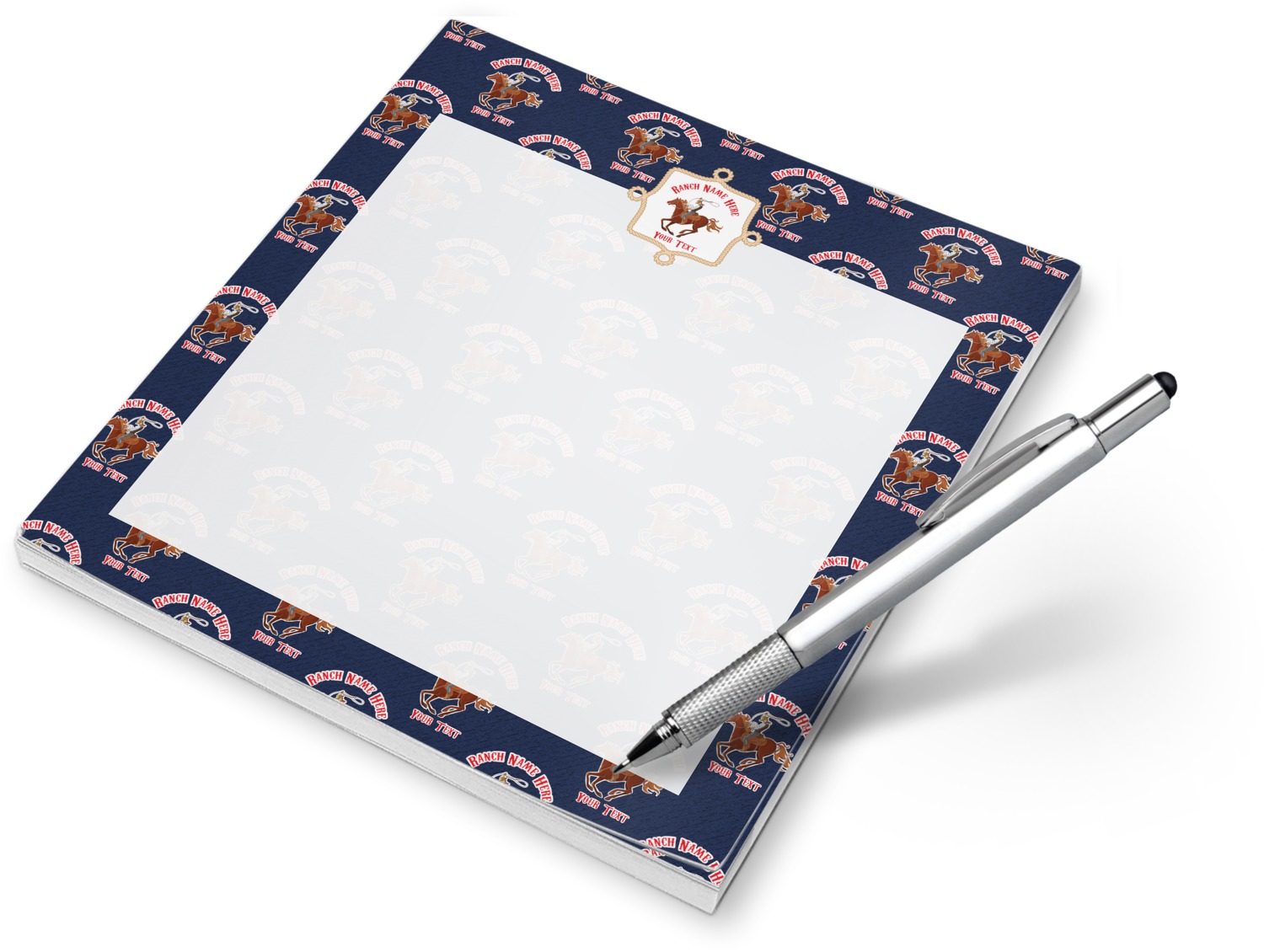 Your custom notepad features 50 sheets of thick, white paper, with your customization in the background and the edges. At approximately 6" x 5.5", these personalized memo pads are slightly larger than your average notepad. The individual notes tear easily from binding, which allows for quick, convenient, note-taking.