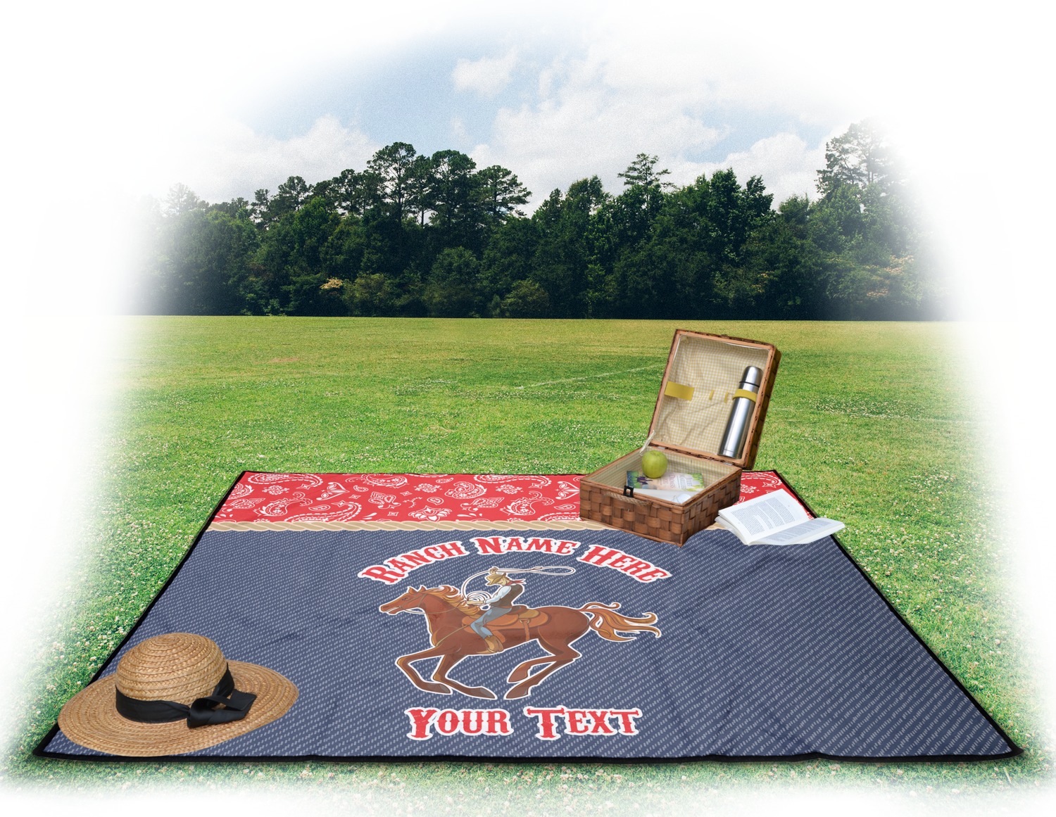 This picnic blanket is perfect for hanging out with your friends at the park or anywhere outside. The top of the blanket is made of a super soft microfiber fleece. The bottom of the blanket is made of a black material similar to a rain jacket and is water repellent as well. This will keep any wet spots on the ground from soaking through your picnic blanket. No one likes a wet blanket. The blanket measures at approximately 50" x 59" and has a nicely finished ribbon edge.
