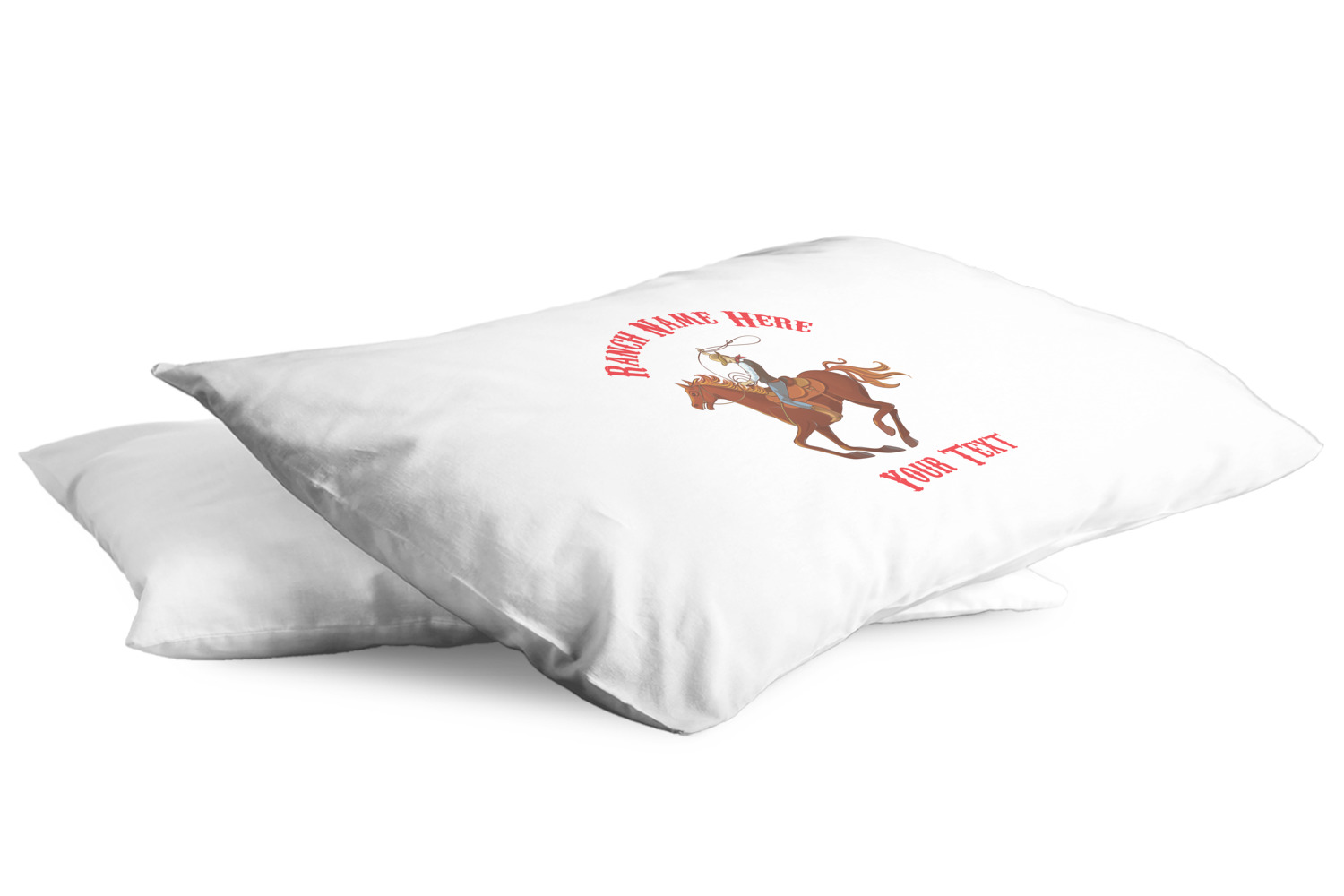 The design has two backgrounds where one fills up two thirds of the background and the other fills up the remaining third. The top third is a bright red paisley design that will get you smiling. The bottom two thirds is a denim pattern that feels like home. A rope ribbon divides the two backgrounds. On the bottom part is a roping cowboy graphic with your personalization above and below him.