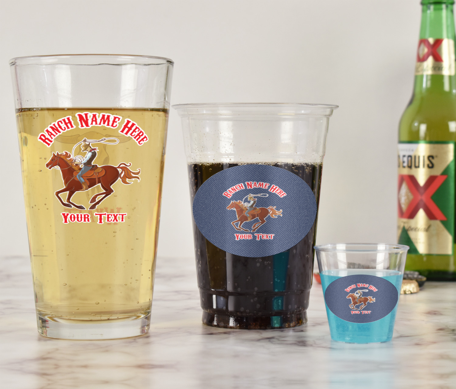 With these glasses you will get your choice of 2 content items on them. Perfect for company promotion or if you own a small restaurant or bar order these to perfectly match your business. Once designed we will print your design directly onto the glass and then a clear coat applied over it to ensure the print lasts for years to come.