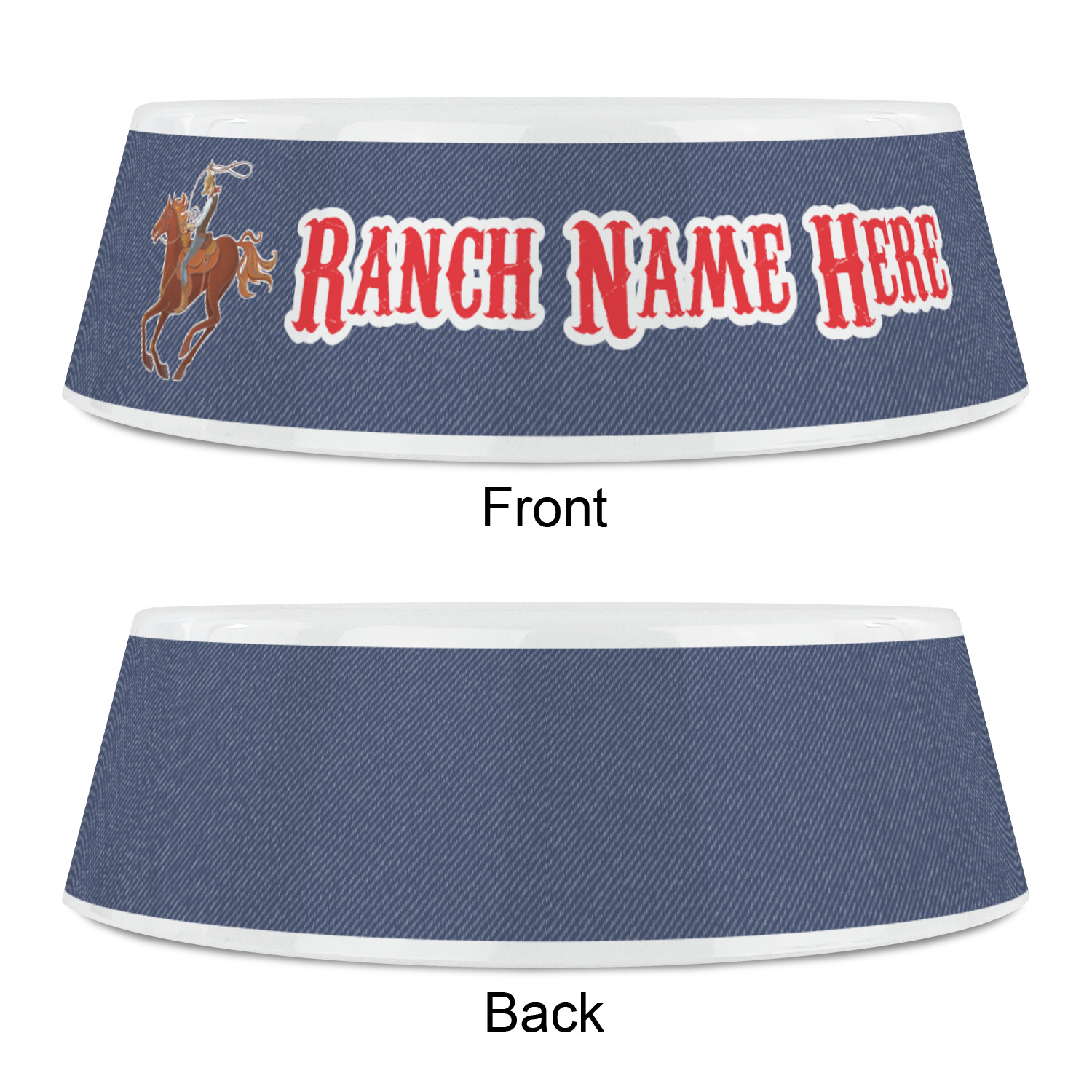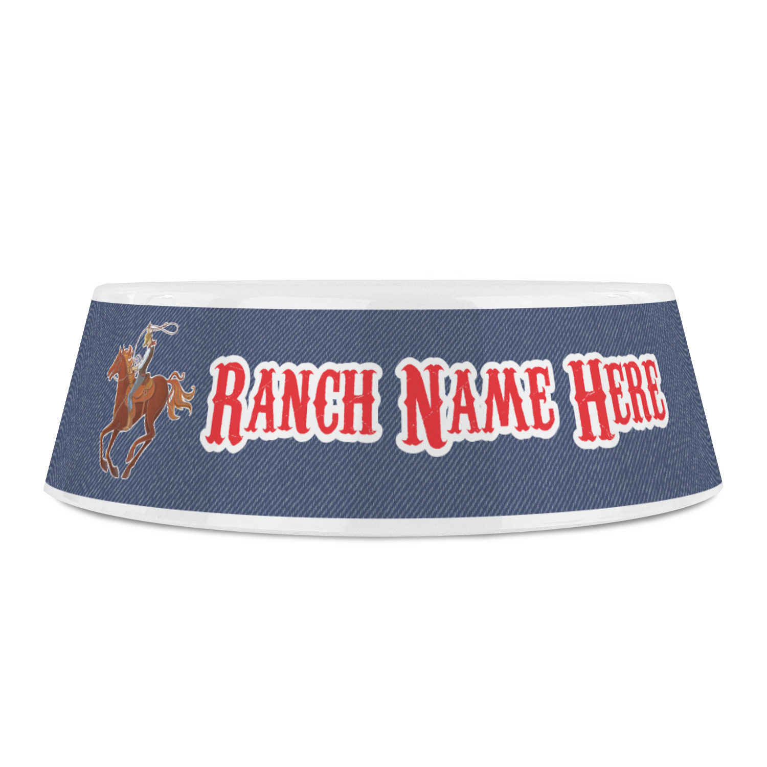 The design has two backgrounds where one fills up two thirds of the background and the other fills up the remaining third. The top third is a bright red paisley design that will get you smiling. The bottom two thirds is a denim pattern that feels like home. A rope ribbon divides the two backgrounds. On the bottom part is a roping cowboy graphic with your personalization above and below him.
