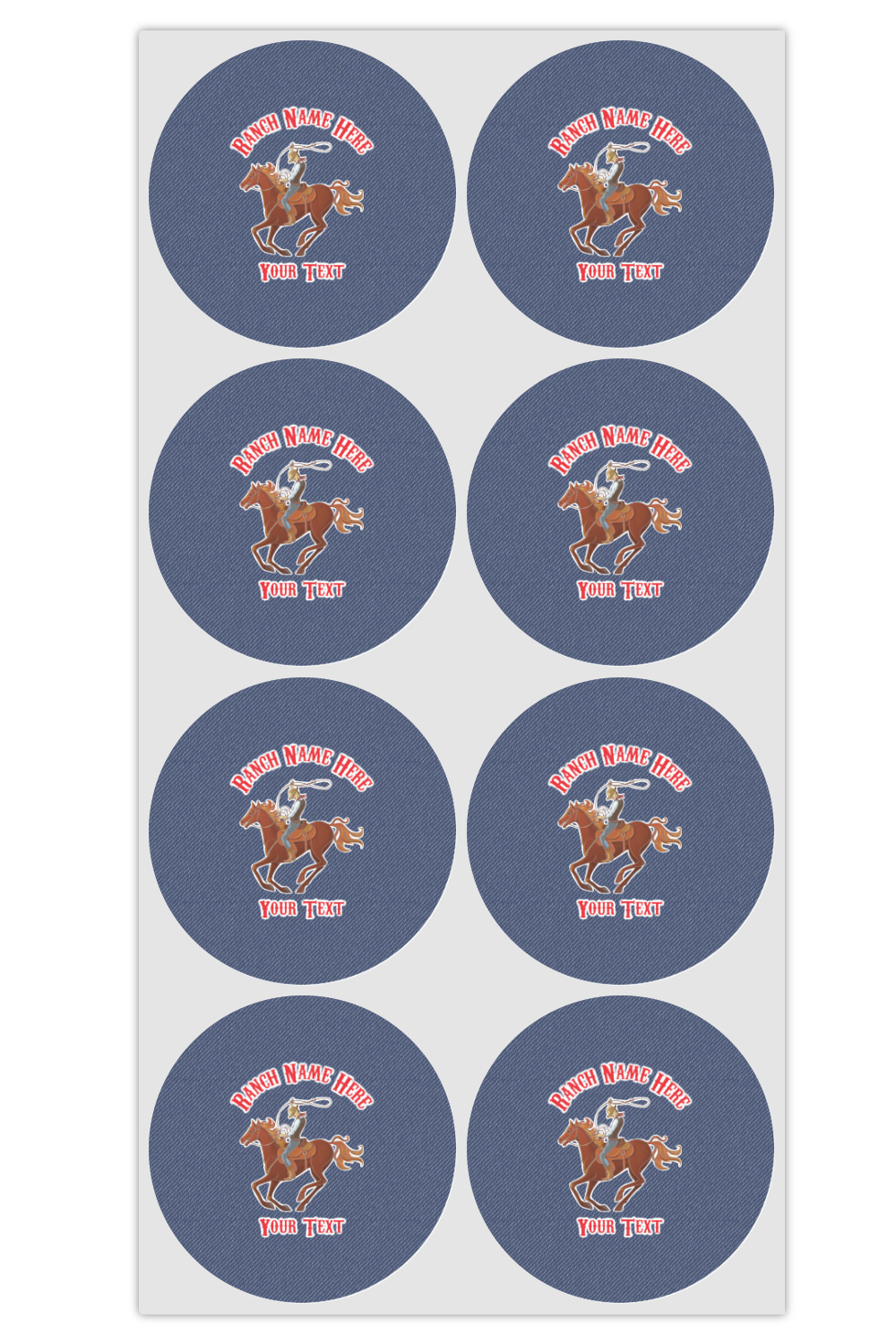 The design has two backgrounds where one fills up two thirds of the background and the other fills up the remaining third. The top third is a bright red paisley design that will get you smiling. The bottom two thirds is a denim pattern that feels like home. A rope ribbon divides the two backgrounds. On the bottom part is a roping cowboy graphic with your personalization above and below him.