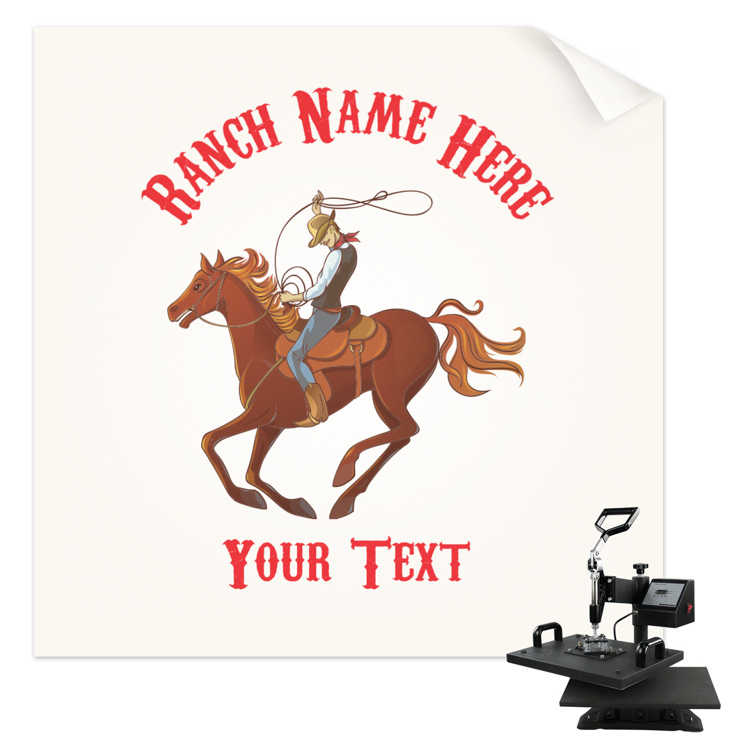 The design has two backgrounds where one fills up two thirds of the background and the other fills up the remaining third. The top third is a bright red paisley design that will get you smiling. The bottom two thirds is a denim pattern that feels like home. A rope ribbon divides the two backgrounds. On the bottom part is a roping cowboy graphic with your personalization above and below him.