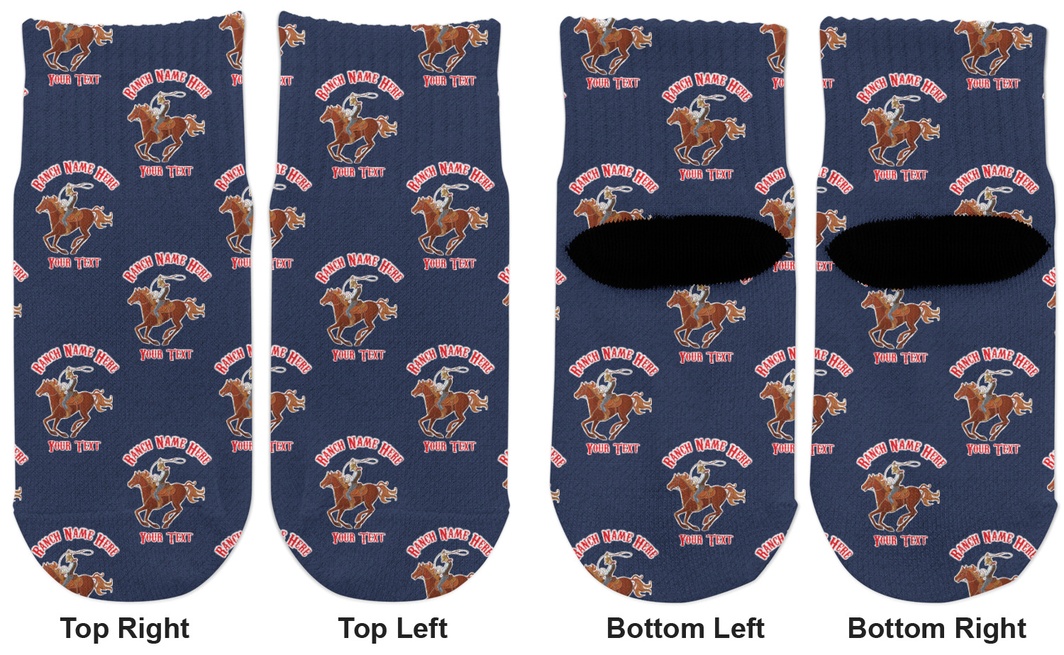 The design has two backgrounds where one fills up two thirds of the background and the other fills up the remaining third. The top third is a bright red paisley design that will get you smiling. The bottom two thirds is a denim pattern that feels like home. A rope ribbon divides the two backgrounds. On the bottom part is a roping cowboy graphic with your personalization above and below him.