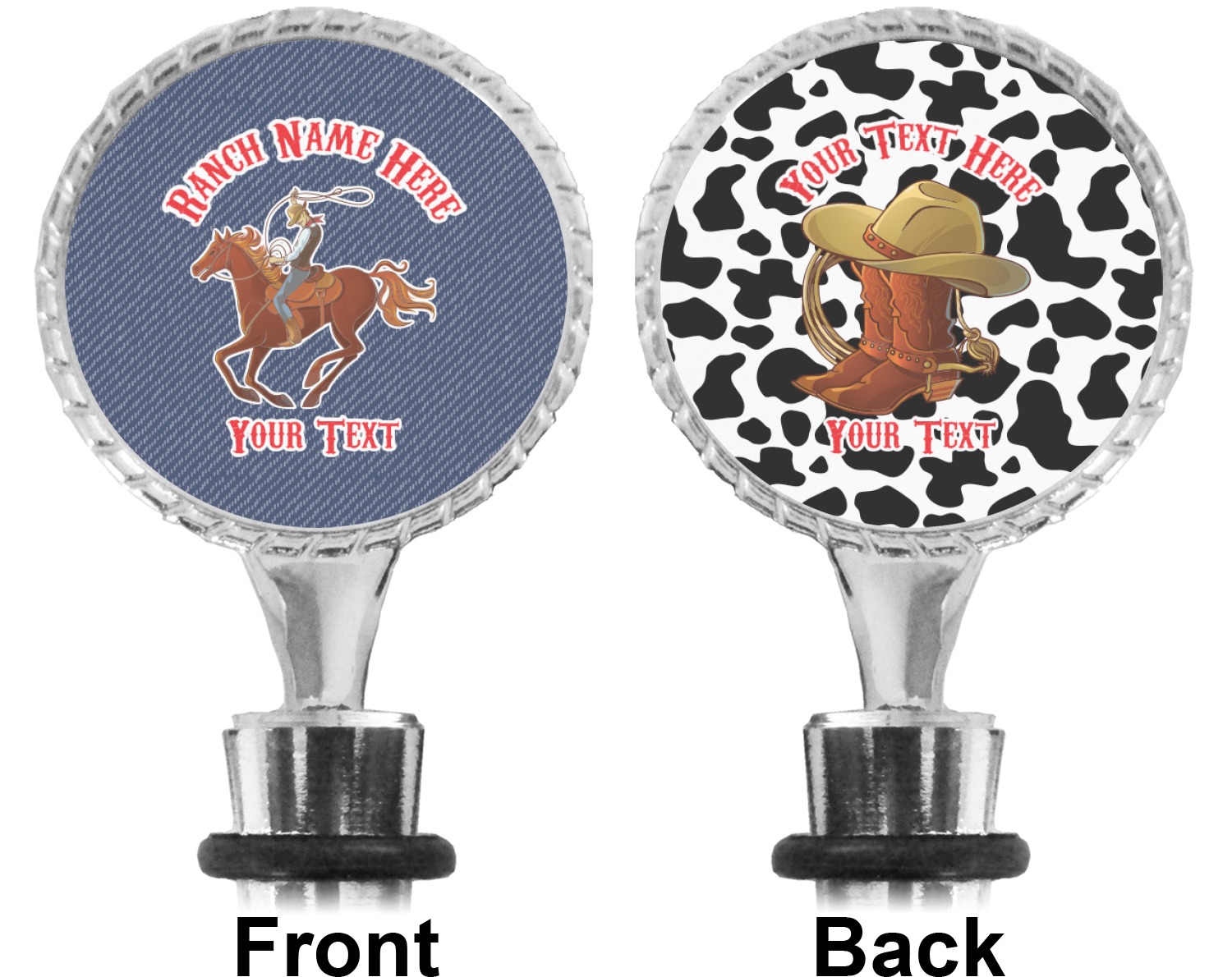 The top part of your bottle stopper is comprised of a zinc ring that displays your customization(s) in its middle, on both sides. The ring is heavy duty, with a bright chrome finish. The body of the wine stoppers have two silicone rings to provide an airtight seal. These wine bottle stoppers measure at 1.625" L x 0.8125" W x 4.625" H; your custom wine stopper is meant to fit into most standard-sized wine bottles.