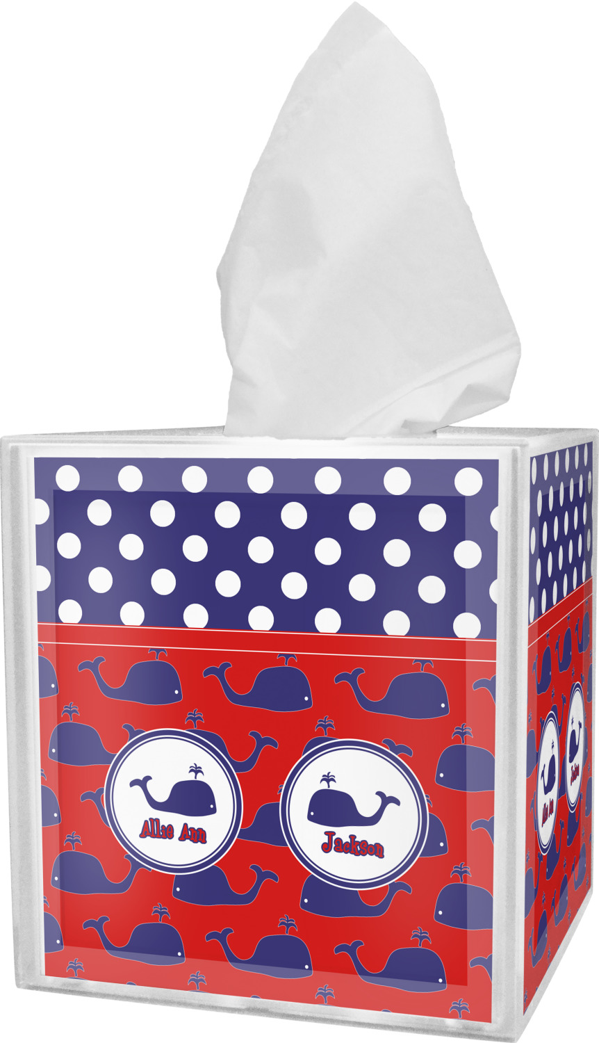 These tissue holders are built from durable acrylic and display your unique personalization on fine-quality vinyl inserts placed within the four sides and top. The box features two pieces, allowing you to easily switch out tissue boxes. On the sides, you'll find ridges that ensure the top and base fit securely in place. The bottom of these tissue box holders has four, rubber, non-slip pads to prevent the box from scuffing any surface you decide to display it on. Each box can fit a standard 5-by-5-inch box of tissues.