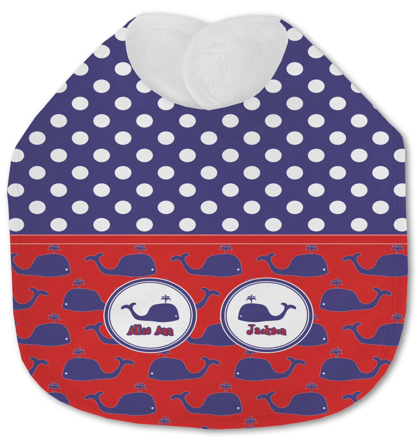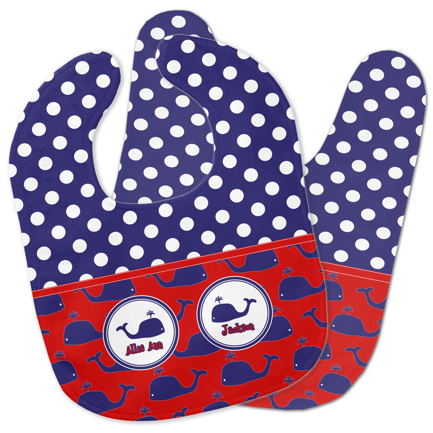 Made of soft polyester, each customizable bib hugs comfortably around the neck to catch every drip and drool. Each bib design is printed with baby-safe ink and finished with a secure stitch pattern and velcro clasp. We carry two customizable bib styles -Microfiber Velour and Jersey Knit.