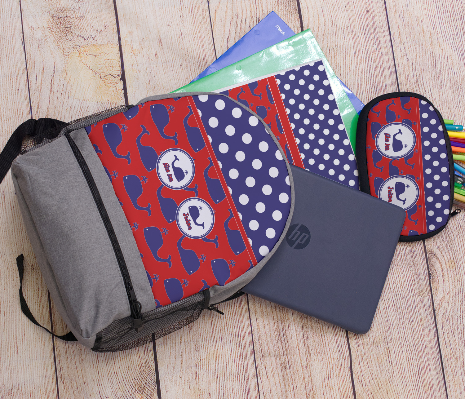Calling all children who would rather be at the beach than at school! This nautical design, featuring polka dots and whales in All-American classic red, white, and blue, is perfect for you.