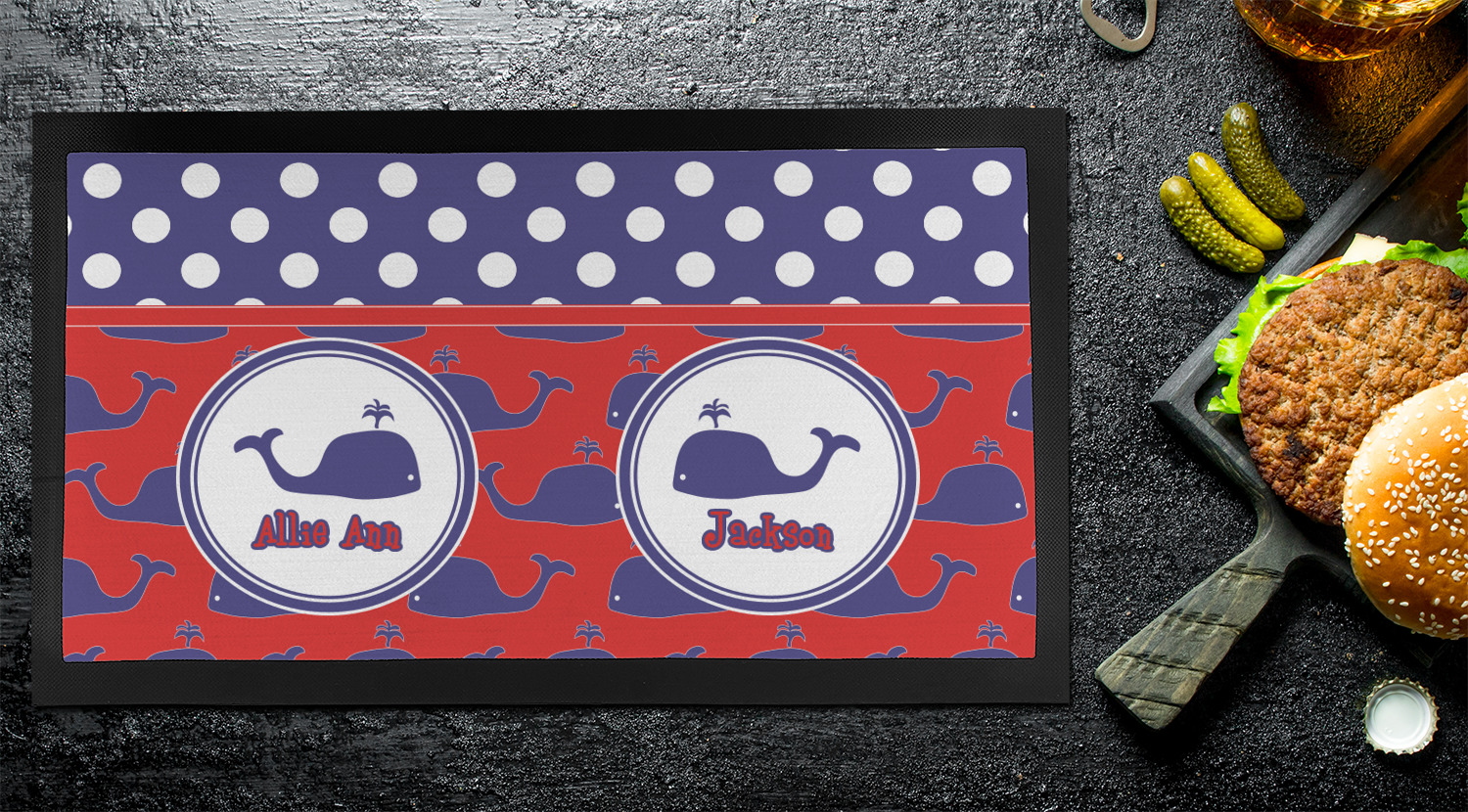 Calling all children who would rather be at the beach than at school! This nautical design, featuring polka dots and whales in All-American classic red, white, and blue, is perfect for you.