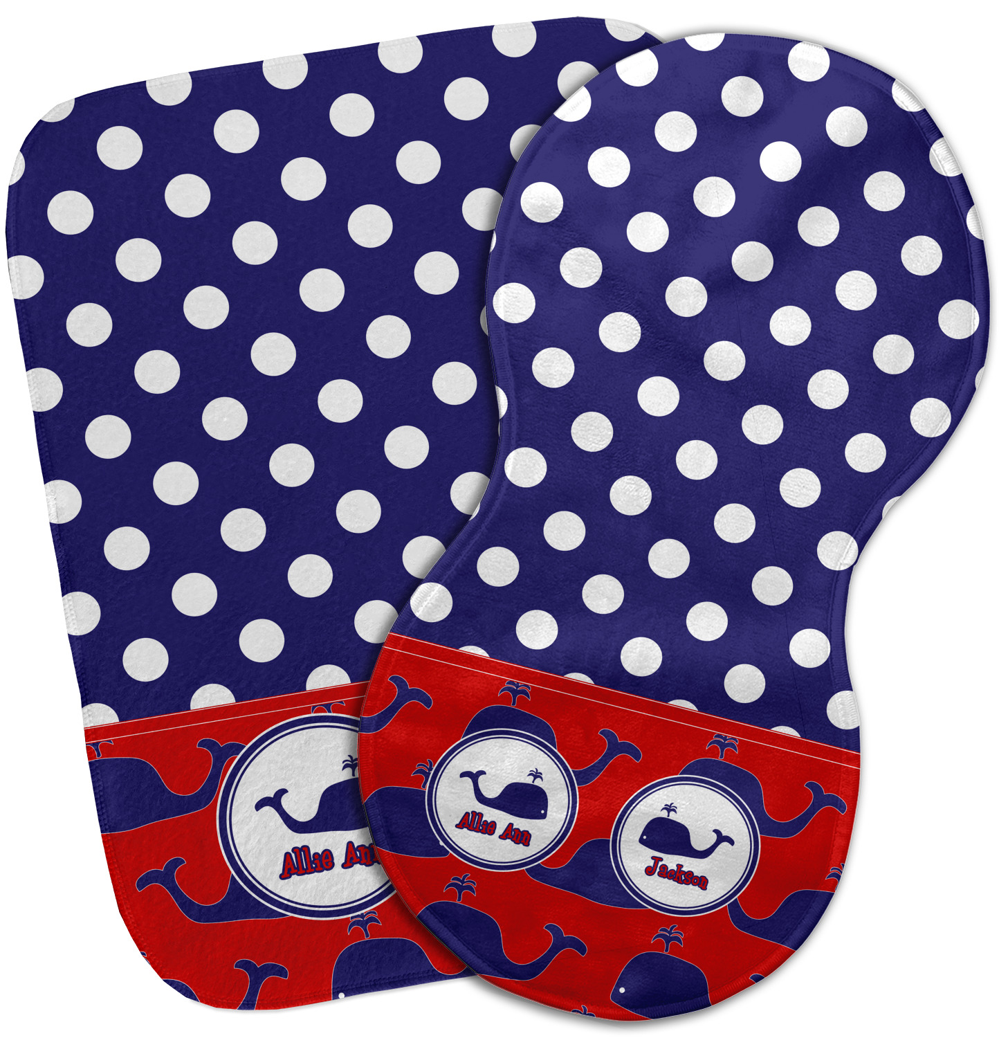 Choose your baby burp cloth from our two styles - Fleece (rectangular) or Microfiber Velour (peanut shape). The lightweight and absorbent design makes each burp cloth multipurpose; use them as a burp pad, a lap pad, a changing table, or a spare cloth to clean up any baby mess. Your customization is displayed across the front with baby-safe ink to ensure extra comfort with a white backing.