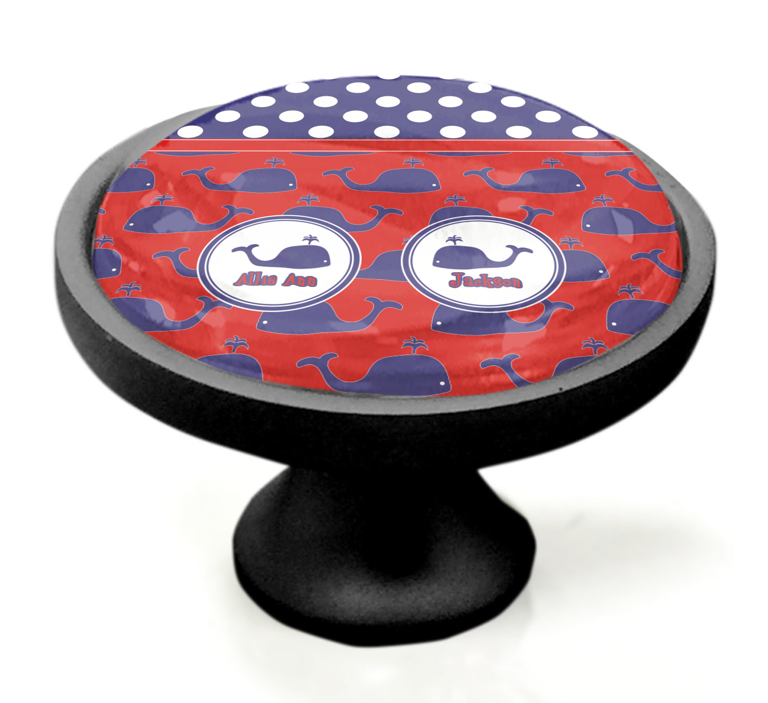 We sell these cabinet pulls in two different colors to better match your room's color scheme. We offer an oil-rubbed bronze base that is black in color, and a satin nickel option, which has a silver color. Your design is displayed across a high gloss vinyl insert that is placed on top of these cabinet handles. We then place a 1 inch thick glass cabochon atop the design, which seals the cabinet knob and makes the colors of your customization stand out. These custom cabinet knobs are approximately 1.3 inches in diameter. Your purchase includes a 1 inch screw that can be used to mount the knob to any cabinet in your home.