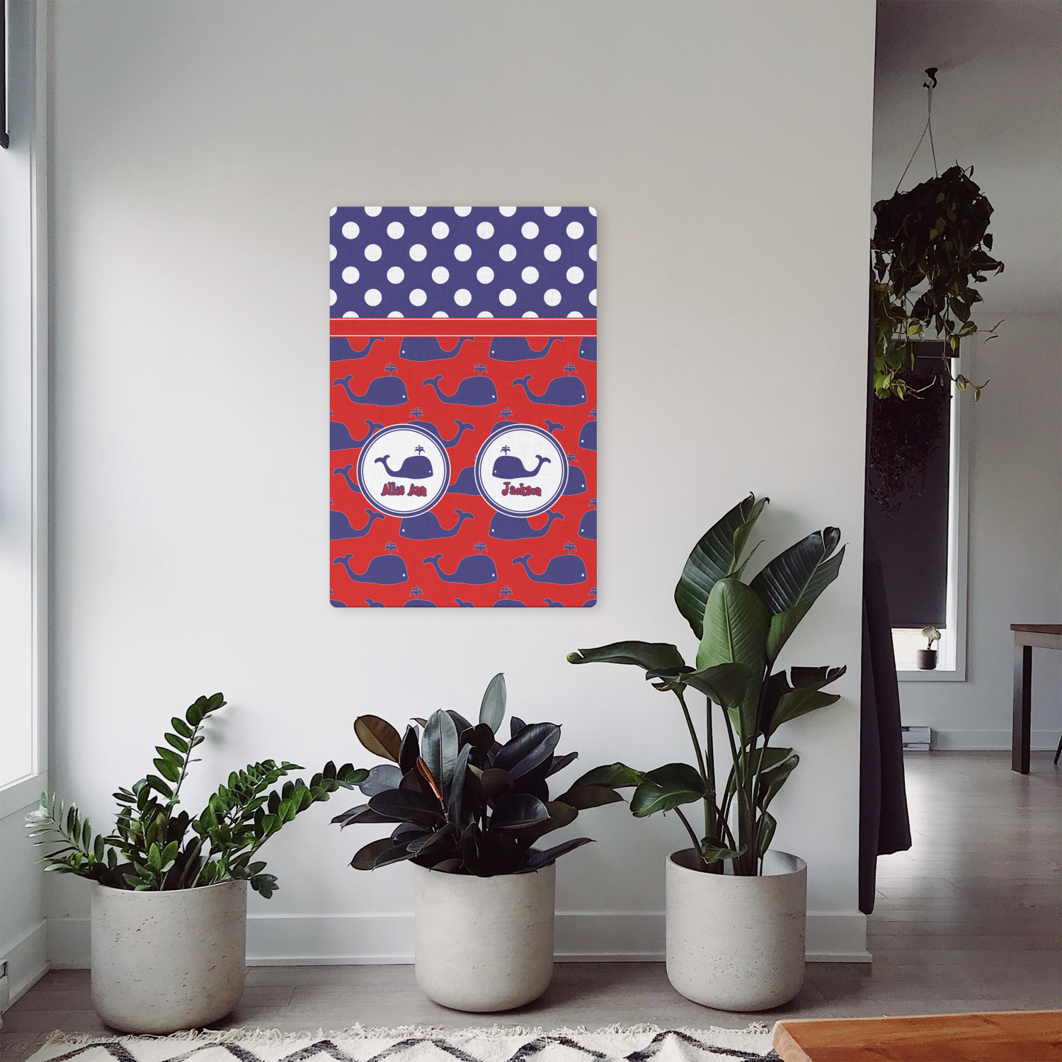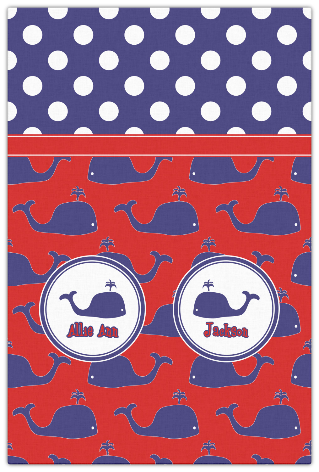 Calling all children who would rather be at the beach than at school! This nautical design, featuring polka dots and whales in All-American classic red, white, and blue, is perfect for you.